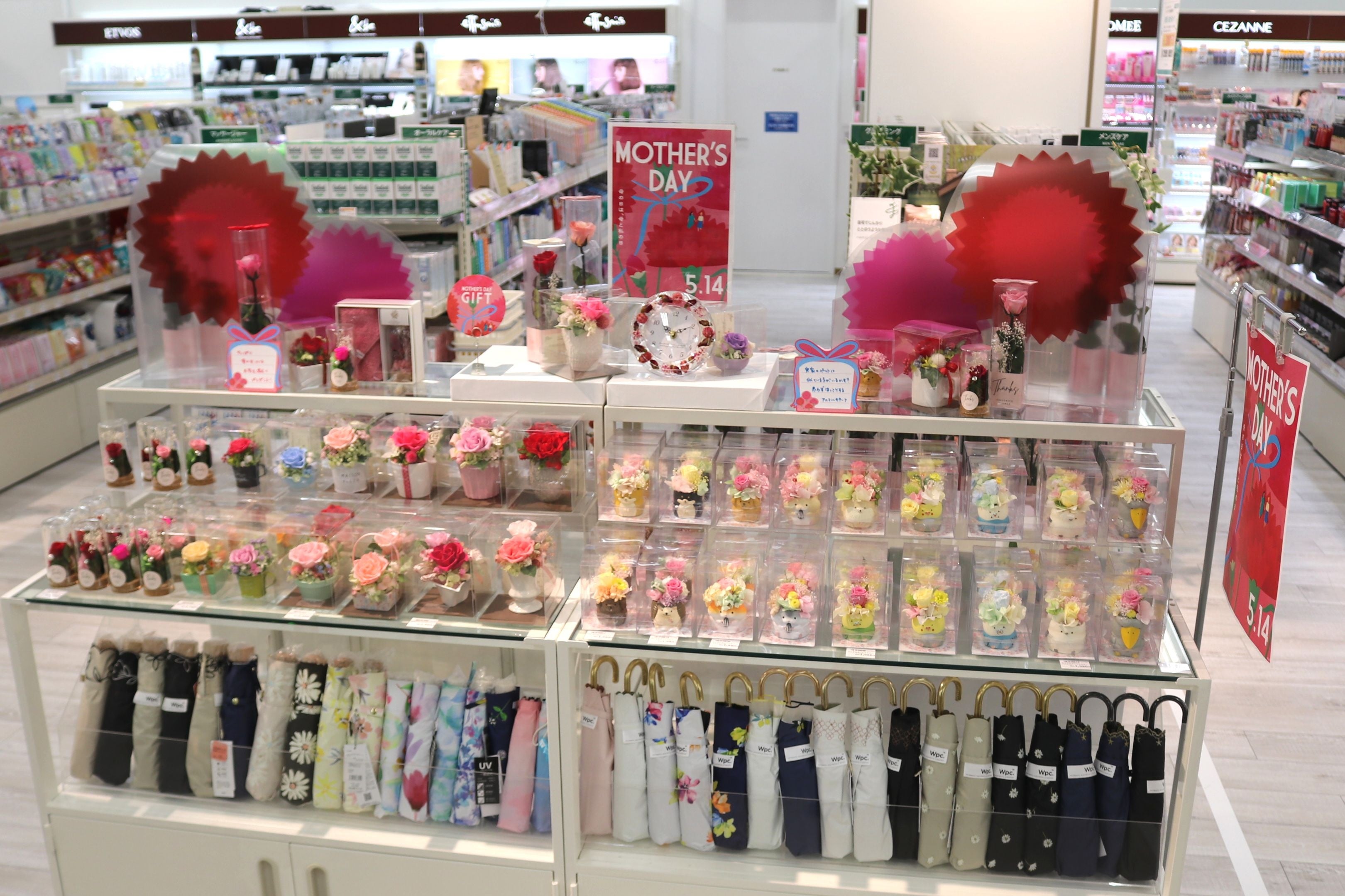 季節に合わせた様々なシーズン雑貨をご用意しています。これから本格的に暑くなる時期へ向けておすすめの暑さ対策用品を多数取り揃えています。また母の日ギフトコーナーではフラワーポットやメッセージカードを多数ご用意しています。