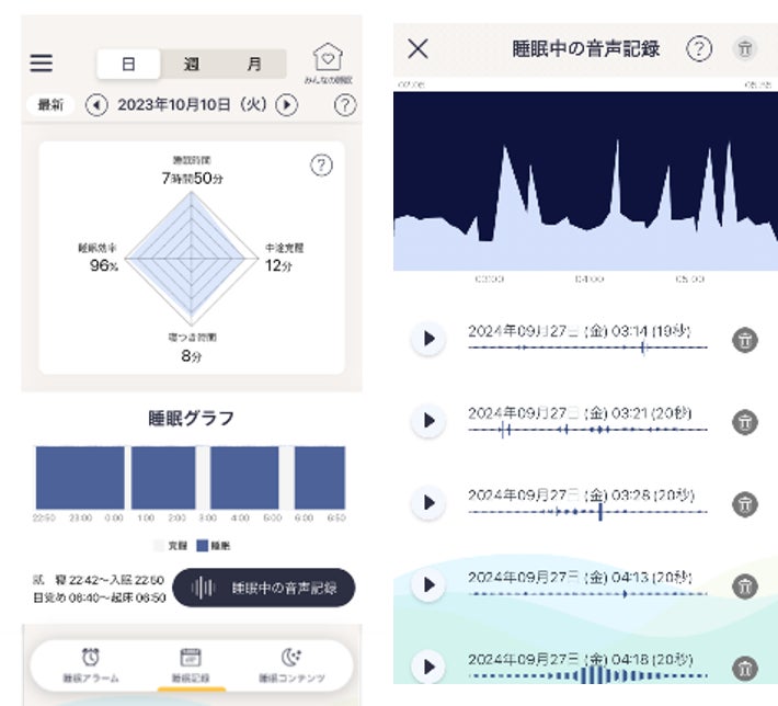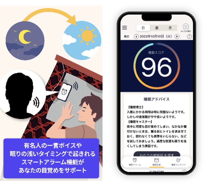 した長年の知見から導き出した、睡眠スコアやアドバイスを提供します。そのほか、スマートアラーム機能や、