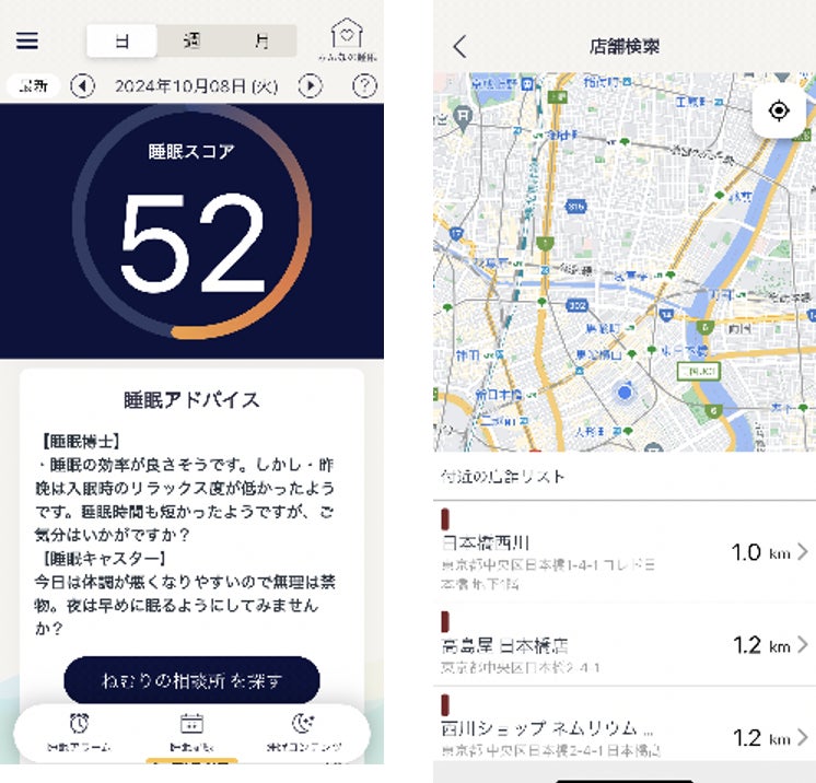 睡眠スコアが優れない場合は、病院を受診する前に相談できる受け皿になる、あなたのお近くの「ねむりの相談所」をお探しします。 (※マット レス連携ユーザーは、お近くの 「睡眠外来を探す」機能も追加されます。)