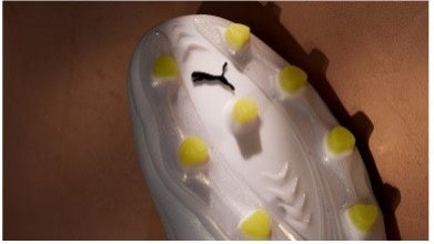 アウトソールには新しいソールユニットを採用。PebaxナイロンとPU(ポリウレタン)から形成される軽量アウトソールで、丸形をベースにしたスタッドは、様々な動きにグリップ力を発揮し機動性を高めます。中足部に配置されたシャンクが中足部の捻じれを抑制し、力の分散を抑える効果をもたらします。