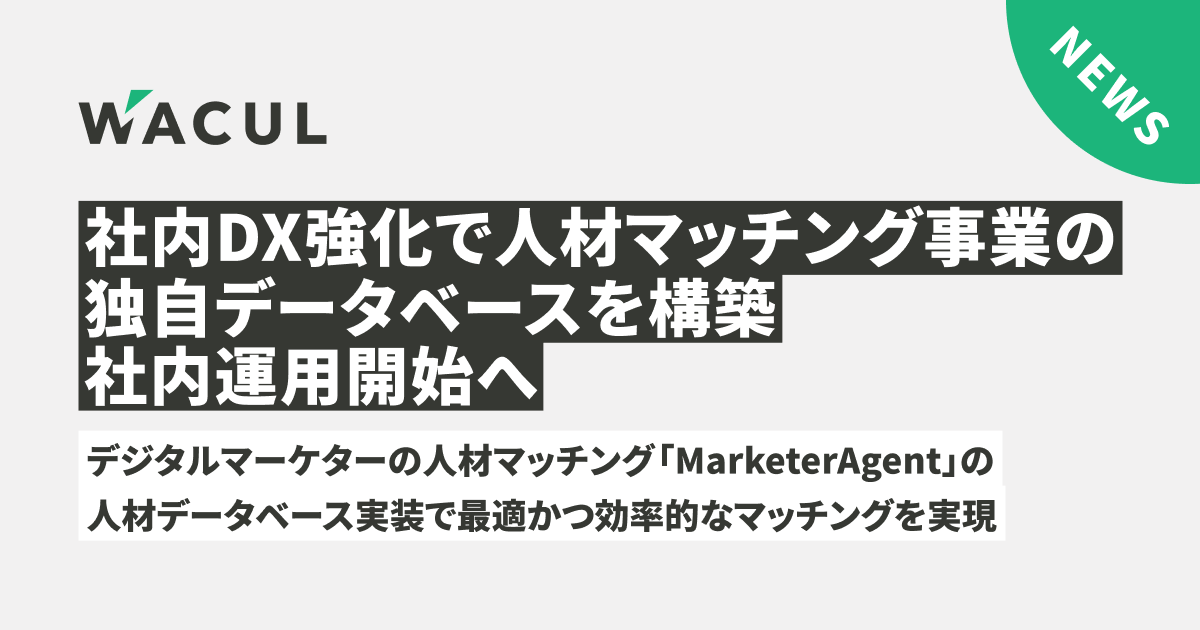 社内DX強化で人材マッチング事業の独自データベースを構築、社内運用開始へ。デジタルマーケターの人材マッチング「MarketerAgent」の人材データベース実装で最適かつ効率的なマッチングを実現