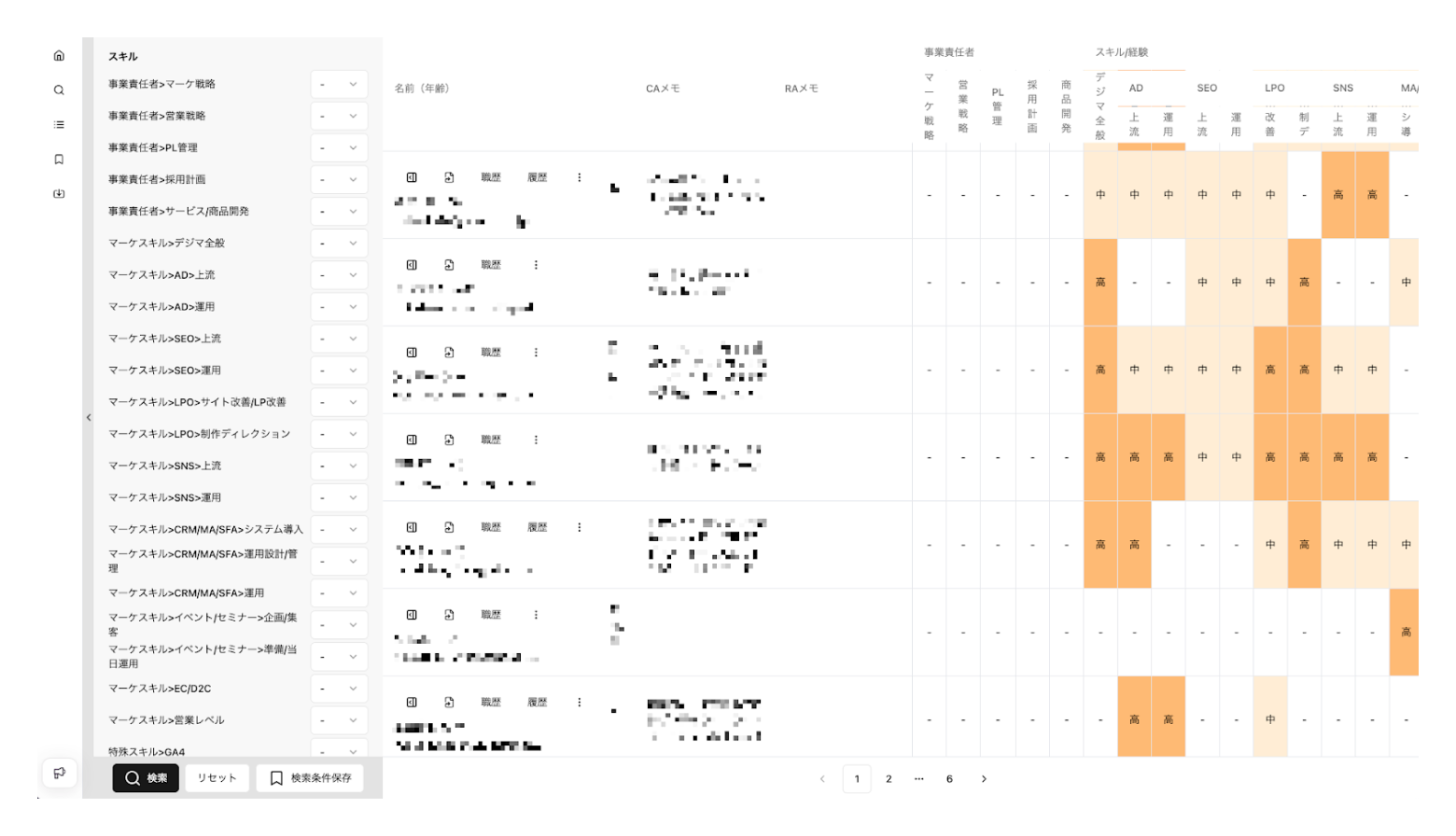 これまで人材データベースは一般的なシステムを活用して行っておりましたが、当社独自のマッチングマーケティングスキルの一覧化や単価の最適化など、デジタル人材のマッチング精度を高め、スピーディーに行える機能を備えたシステムを構築しております。