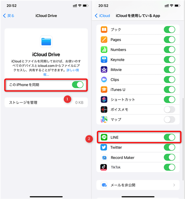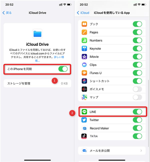 iCloud DriveでLINEの設定を有効にする操作手順は以下のとおりです。