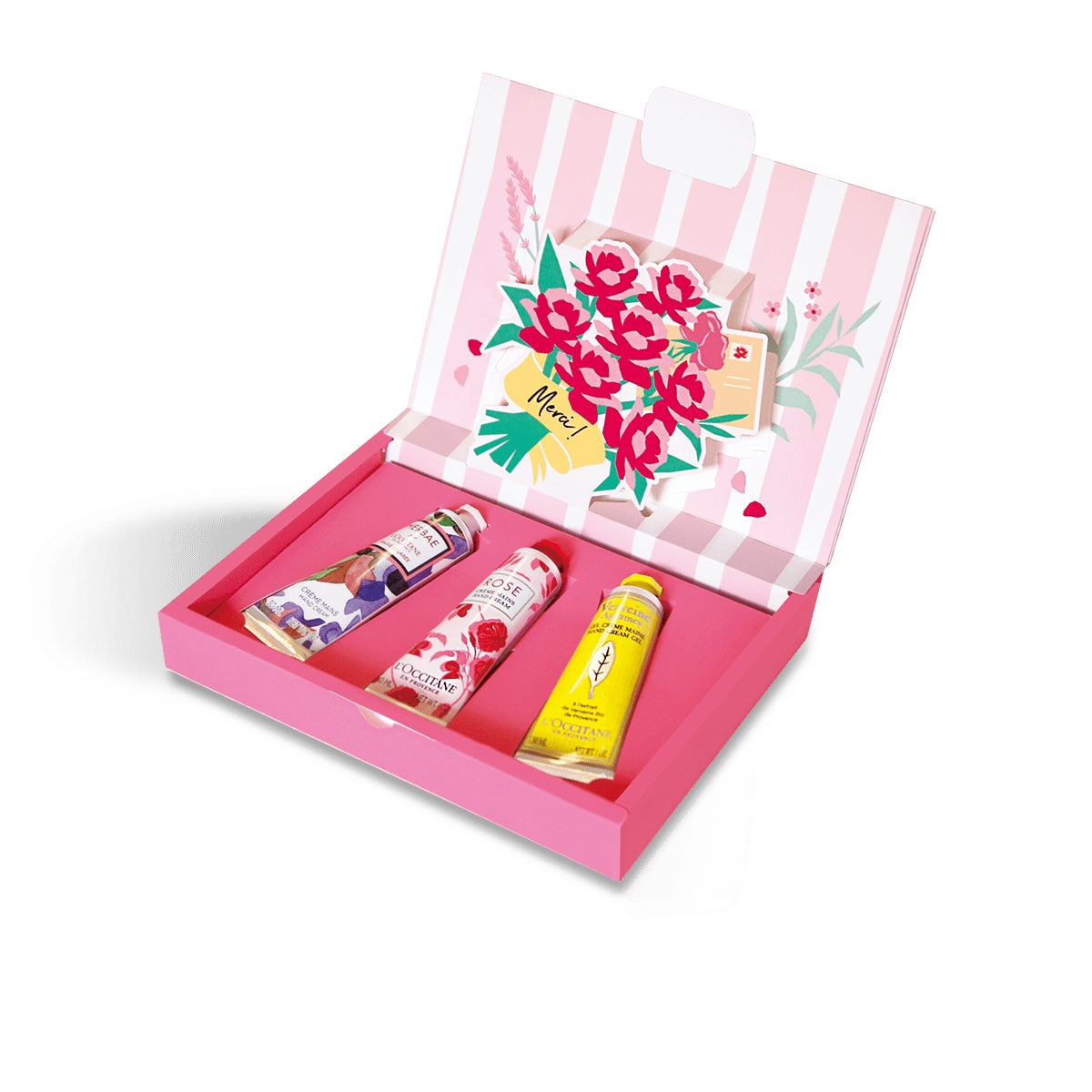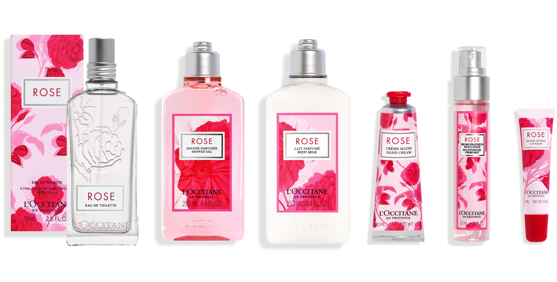 そんなみずみずしいローズウォーターを使用した「ローズ」シリーズが、より華やかな新デザインになって、今春リニューアル登場します。ラインナップは全6品。纏えば自然と幸せを引き寄せて笑顔があふれるような、透明感のあるフレッシュフローラルな香りのオードトワレや、リラックス効果もあるローズの香りに包まれながら肌をやさしく洗い上げる自然由来の保湿成分配合のシャワージェル、ローズペタルのようにうるおったなめらかな手肌へ導くハンドクリームやボディミルクなど。何気ない毎日を甘くみずみずしいバラ色に変える南仏のフレッシュなローズの香りは、日常使いにはもちろん、誕生日のお祝いや、母の日のプレゼントにもオススメです。この機会にぜひ店舗や公式通販サイトへお立ち寄りください。