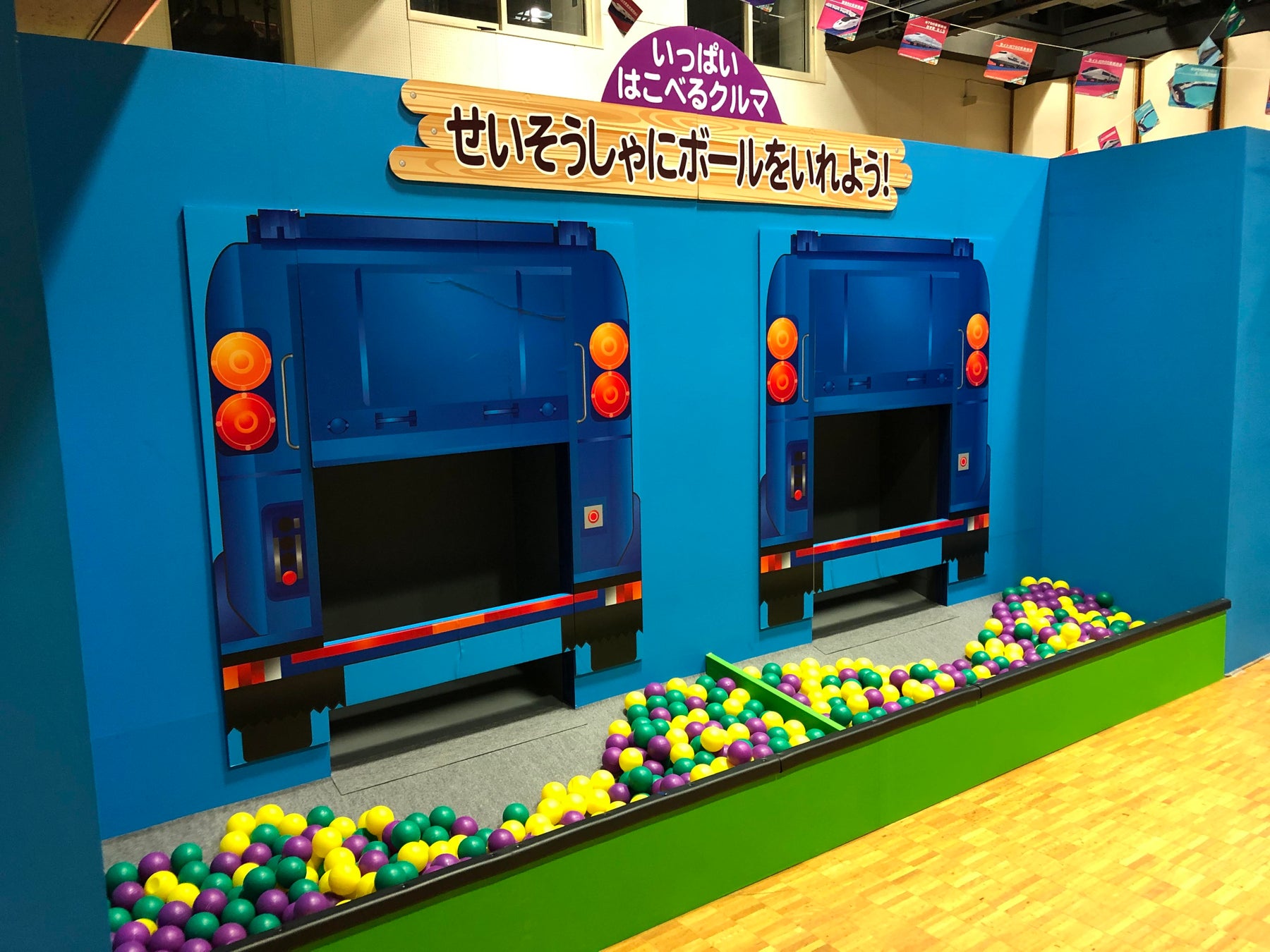 「せいそうしゃにボールを入れよう!」