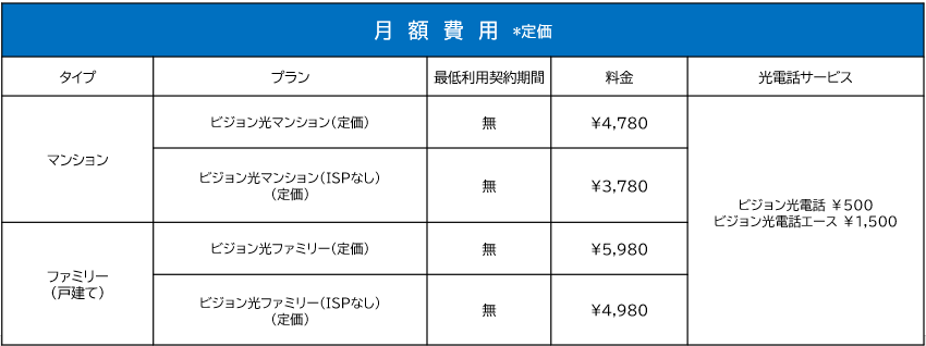 〇サービス内容:NTT東西が提供する光回線を使用した法人・個人事業主向けブロードバンドサービス(ビジョンが回線事業者となります。)