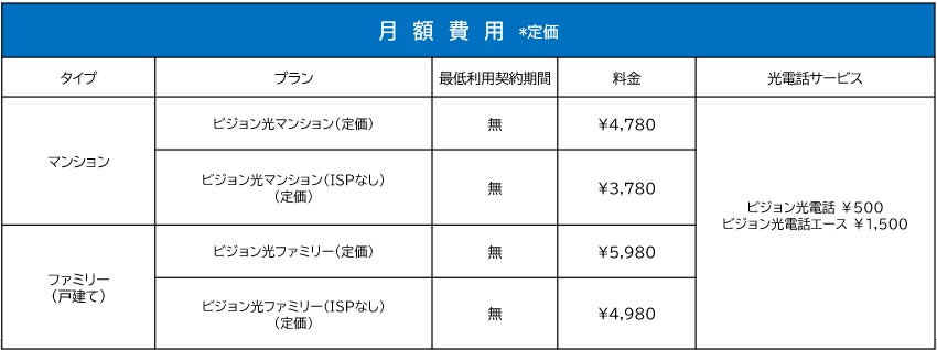 「ビジョン光」はNTT東西が提供する光回線を使用しており、回線品質はそのまま、安価で利用いただけるブロードバンドサービスです。従来の取次型から自社でのサービス提供に切り替えることで、包括的な通信インフラを柔軟な価格でご提案できることに加え、自社内に専任窓口を設けることで顧客サポートの拡充を図ります。