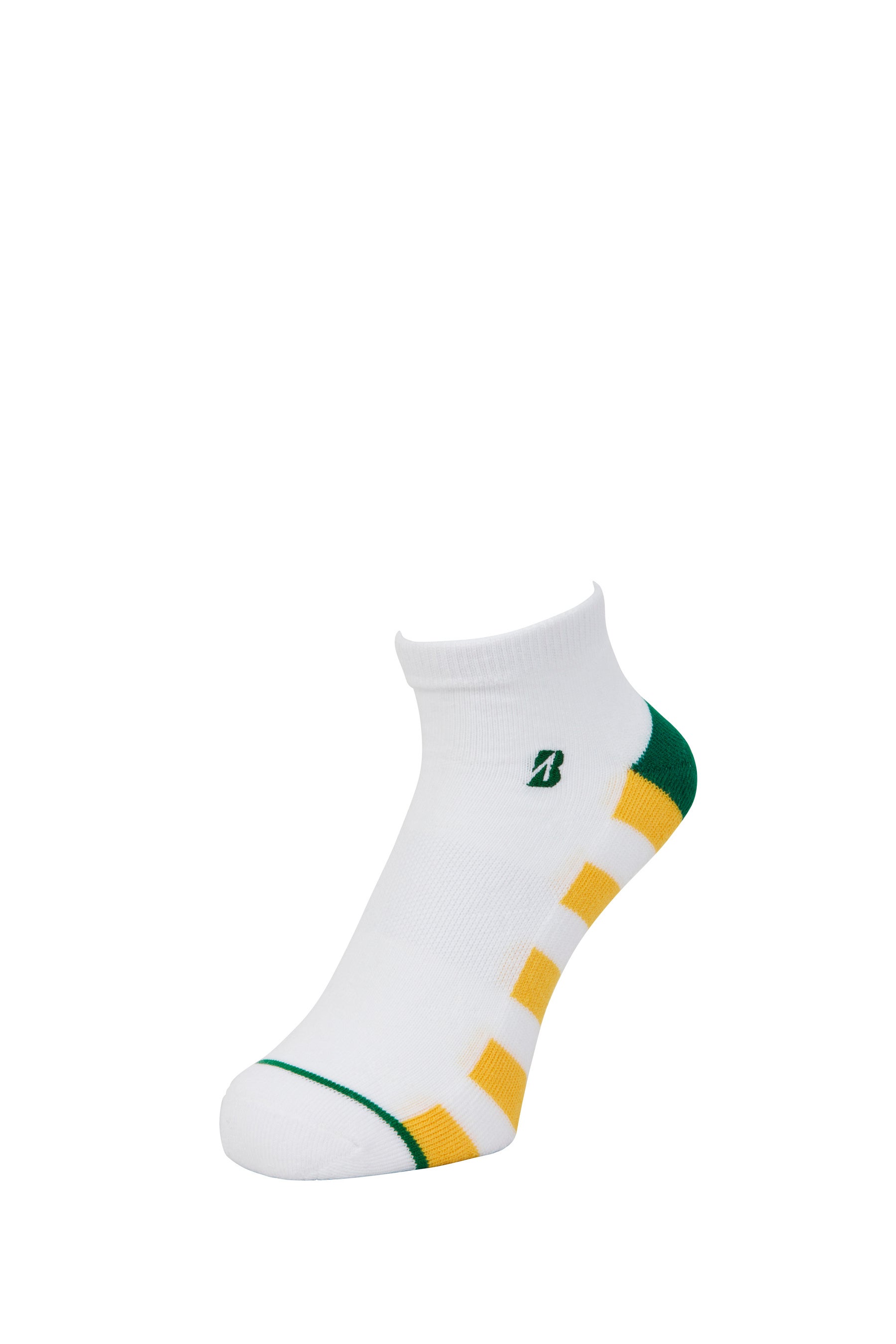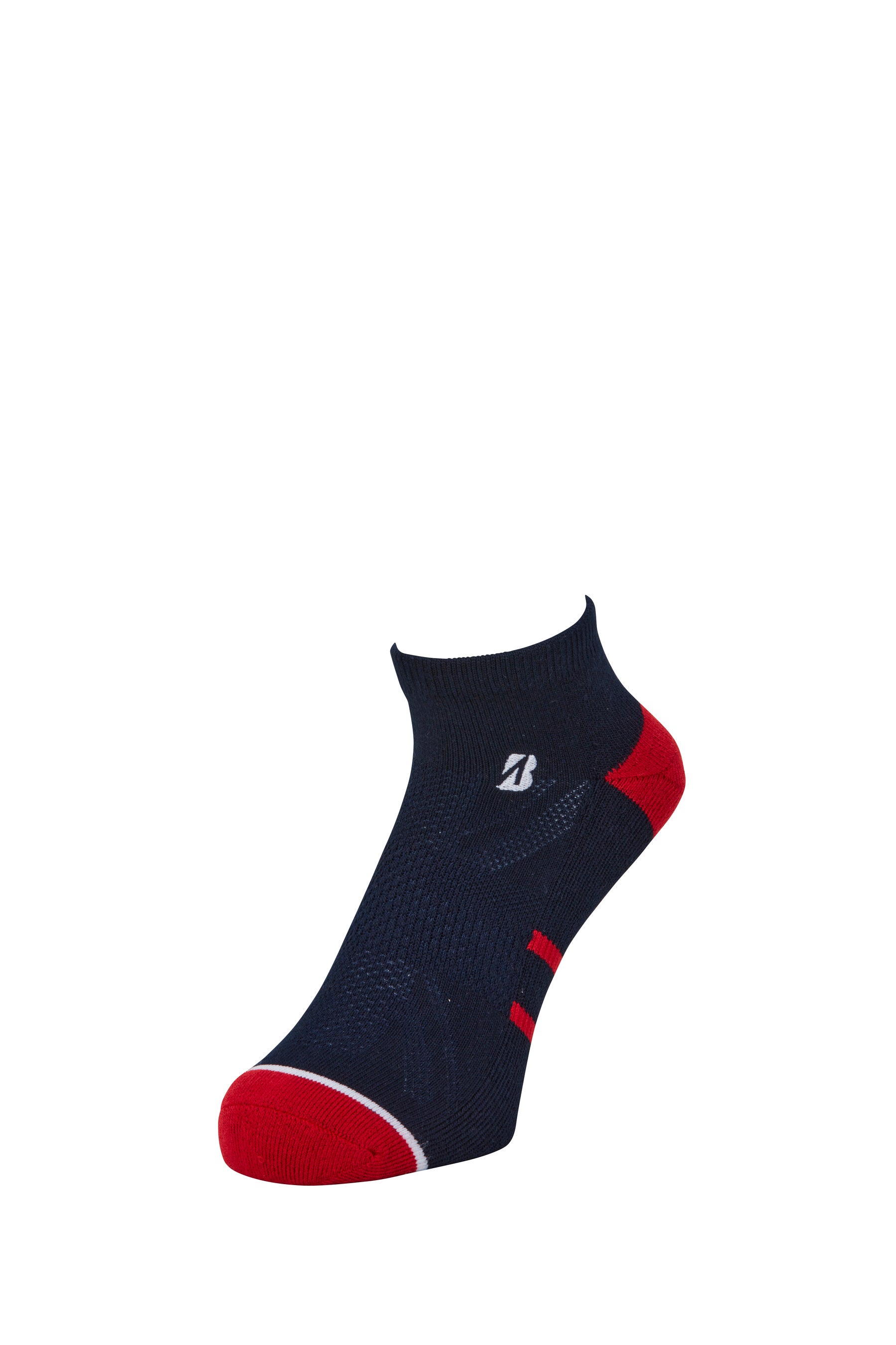 ゴルフソックス(SOJ25A)は、甲部分に星や国旗がモチーフになったメッシュ柄を、さらに、足裏にもデザインを施しており、シューズを脱いだ後も楽しめる商品です。