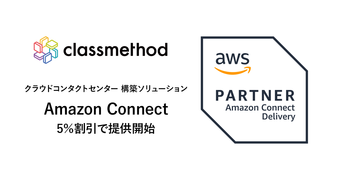 クラスメソッド株式会社(本社:東京都千代田区、代表取締役社長:横田 聡、以下「クラスメソッド」)は、アマゾン ウェブ サービス(AWS)からクラウドコンタクトセンターソリューションのAmazon Connectに関するサービスデリバリープログラム(SDP)認定と再販権を取得しました。これを受けて、クラスメソッドは2023年1月より、Amazon Connectについてもクラスメソッドメンバーズの一律5%割引プランの対象として提供を開始します。