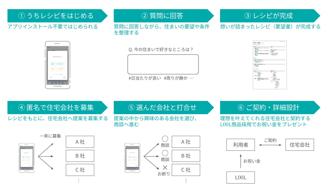 LIXILはこの「うちレシピ」のサービスをこれまで、期間、エリア、対象ユーザーを限定して試験展開をしてきましたが、2023年7月14日より新たに札幌市近郊で一般ユーザーを対象に試験展開を開始します。今後はこのサービスを全国的に展開することで、住宅購入希望者の家づくりに対する主体性の向上と住宅会社の集客力の向上に貢献し、住宅業界全体の活性化を目指してまいります。