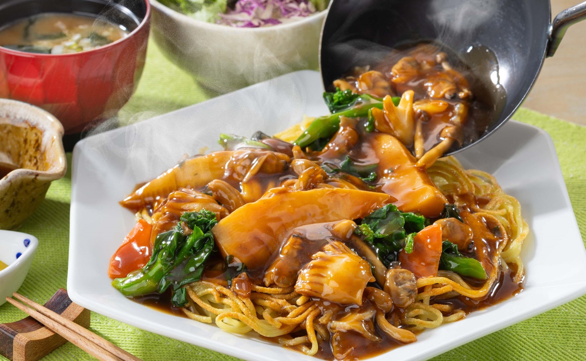春野菜と海鮮の黒酢あんかけ焼きそば