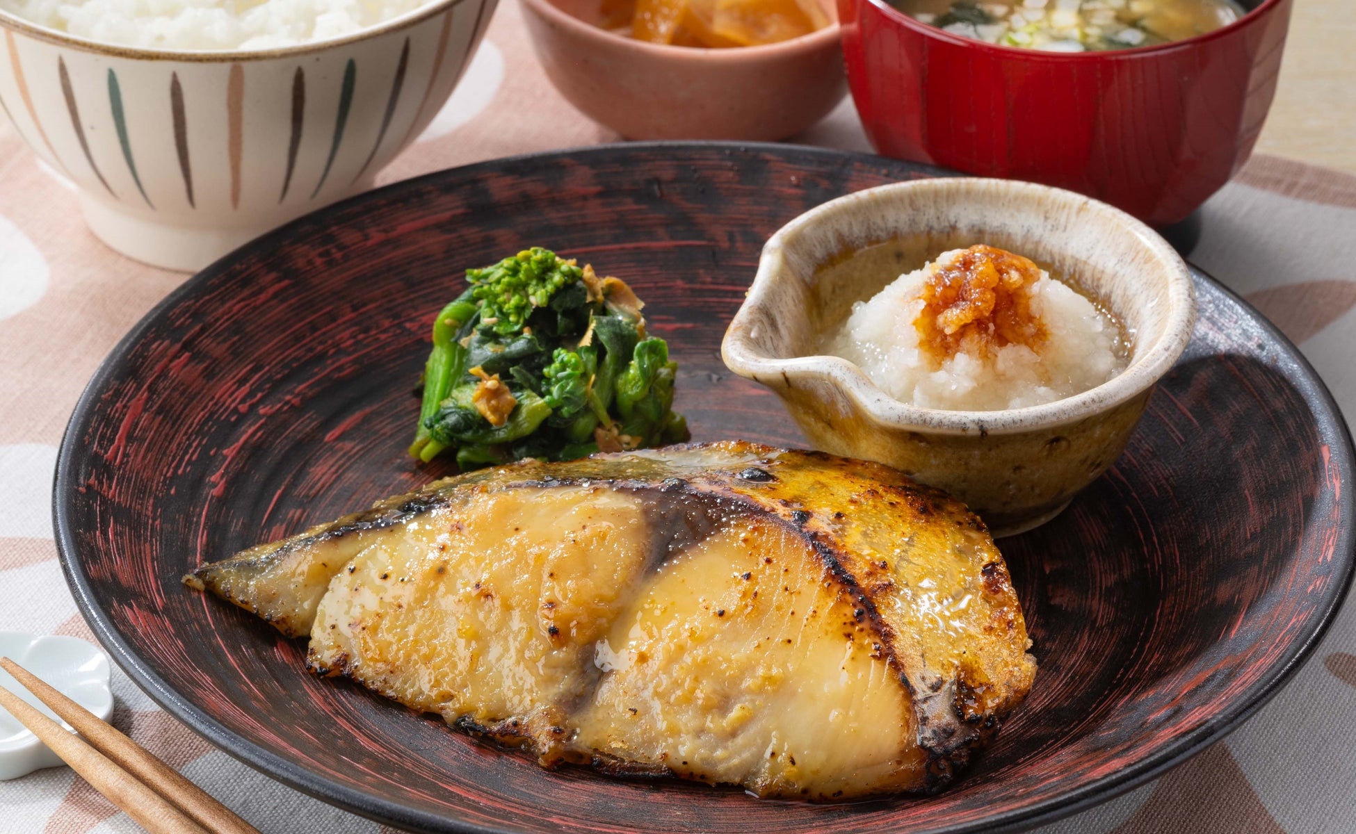 西京味噌は、米麹、大豆、塩を原料に作られた甘口で風味豊かな味噌です。炭水化物、たんぱく質、レシチンなどの栄養素を含み、鰆に含まれるEPAやDHAと共に血流改善をサポートします。鰆を西京味噌漬けにすることでアミノ酸が増加し、うま味もアップします。