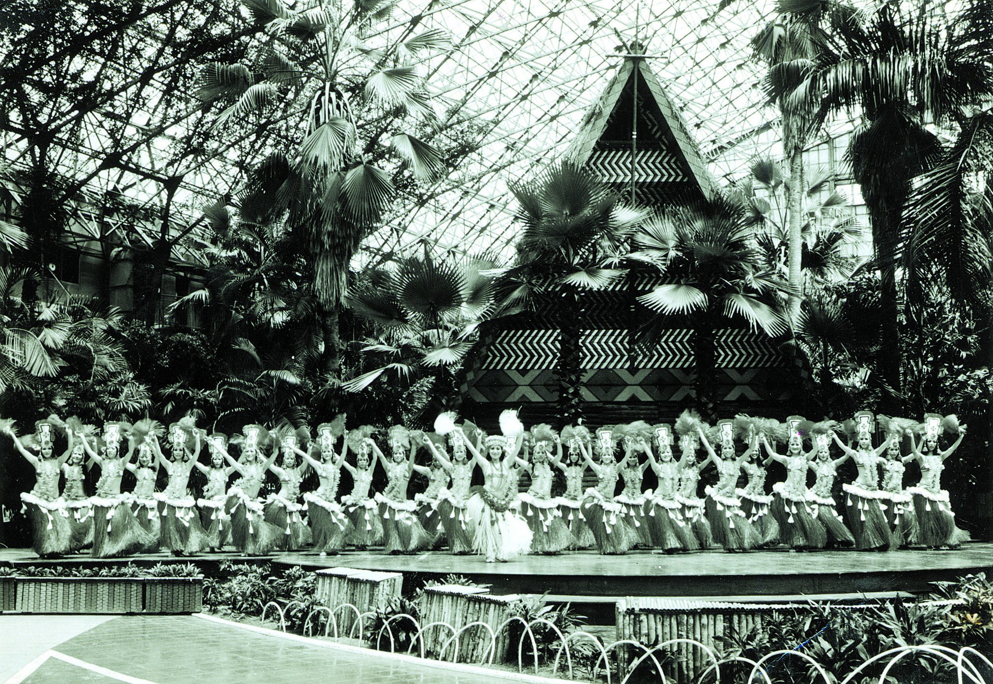 開業1年前の昭和年(1965年)4月、日本初のポリネシアン民族舞踊の学校『常磐音楽舞踊学院』が設立され、専属ダンサーの育成がスタート。