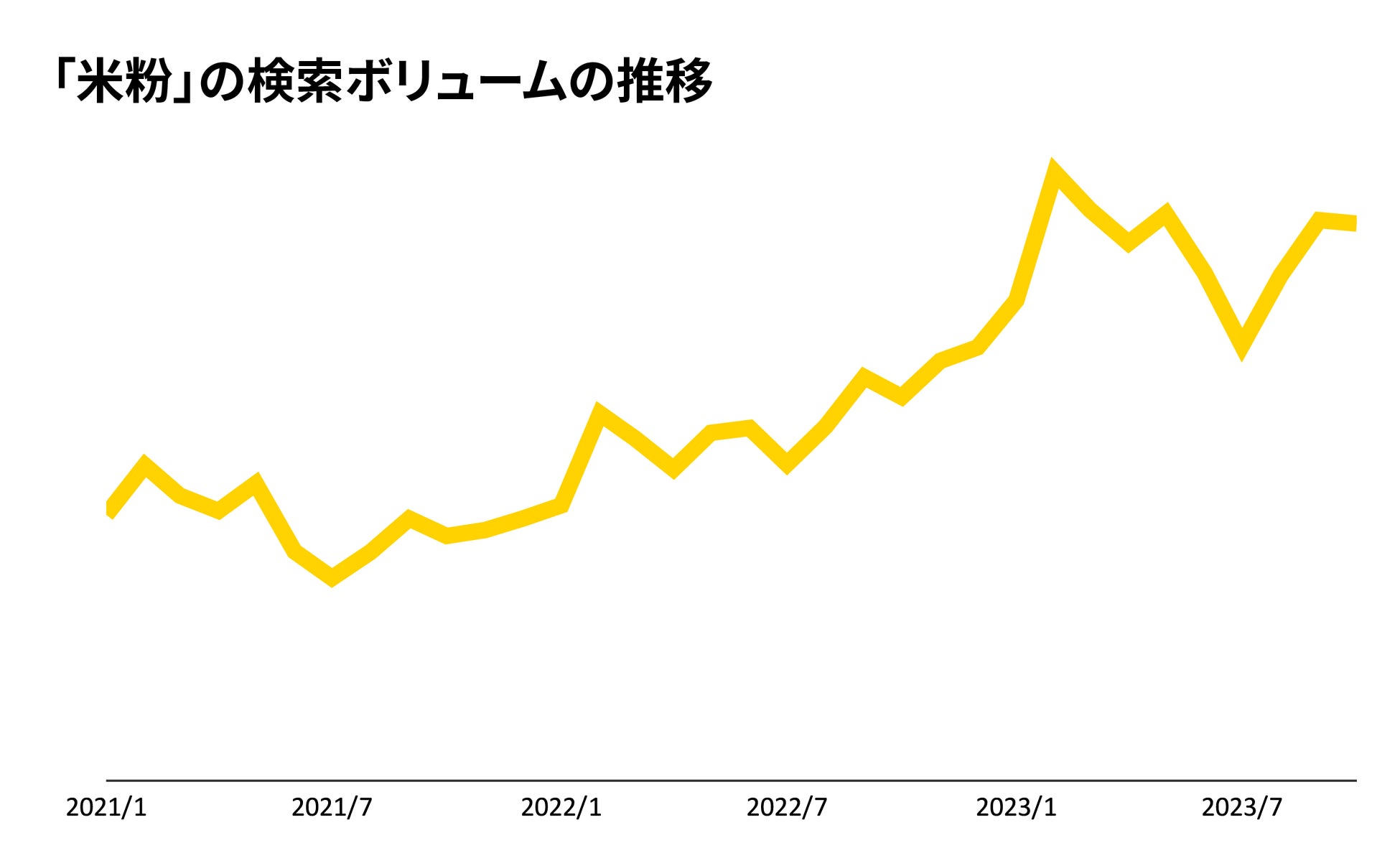 「米粉」の検索ボリュームが昨年比150%超に急上昇!ヘルシー×実用性が人気のカギに
