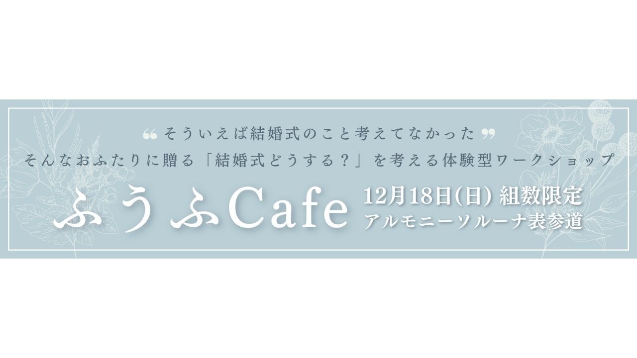 株式会社ウエディングパーク(本社:東京都港区、代表取締役社長:日紫喜 誠吾)は、これからを考えるおふたりに向けたリアルイベント「ふうふCafe」を12月18日(日)にアルモニーソルーナ表参道にて開催いたします。特設サイトにて、参加の申し込みを募集しています。