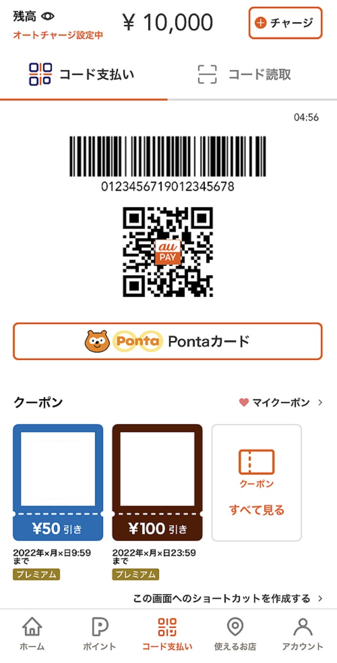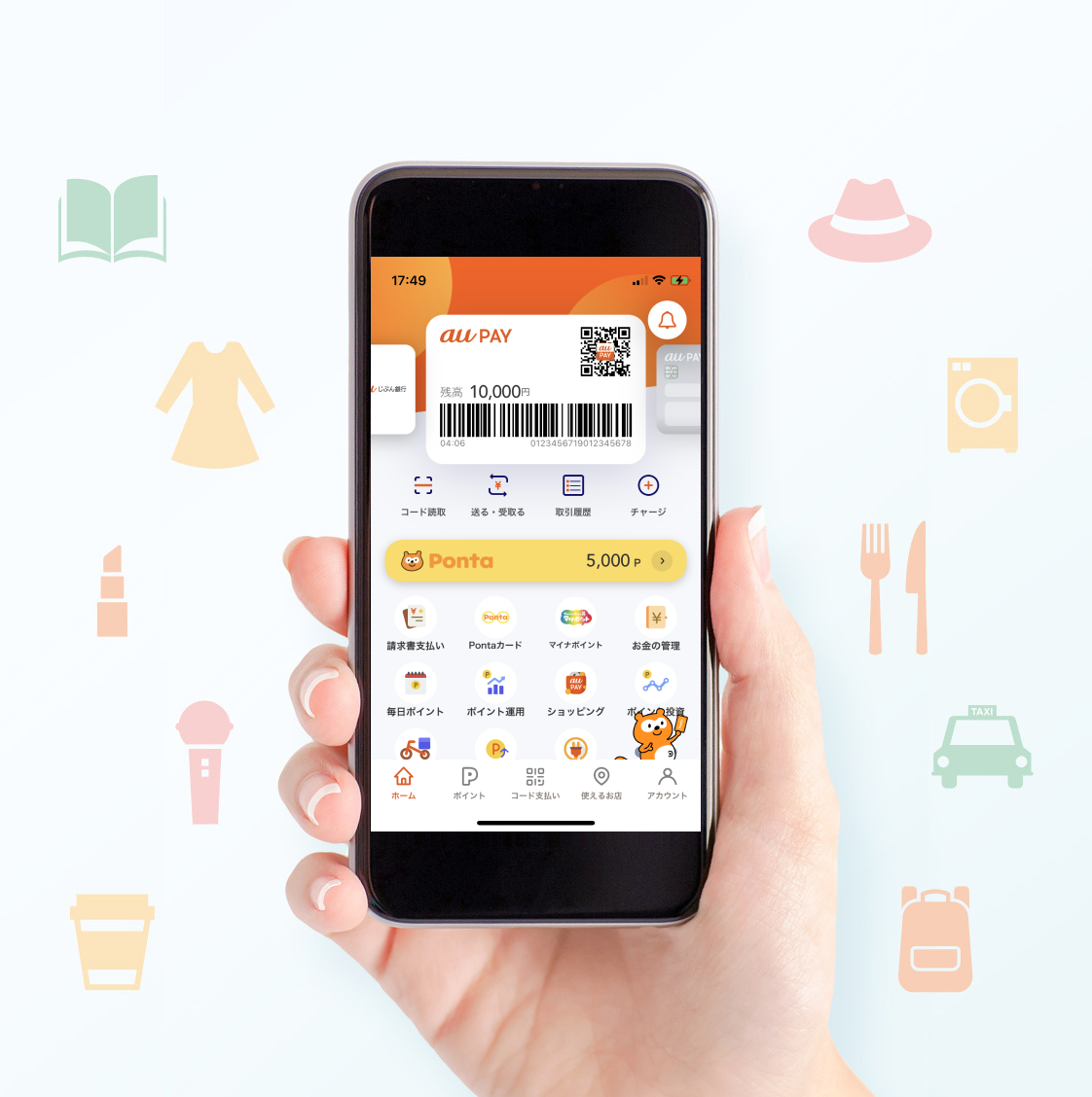様々な決済方法で簡単、便利、おトクにお支払いできるサービスで、スマホに表示されたコードを利用して支払いを行います。「au PAY」は、auの携帯電話キャリアを利用していない方でも、au PAY アプリをダウンロードしau IDを取得すれば誰でも利用が可能です。