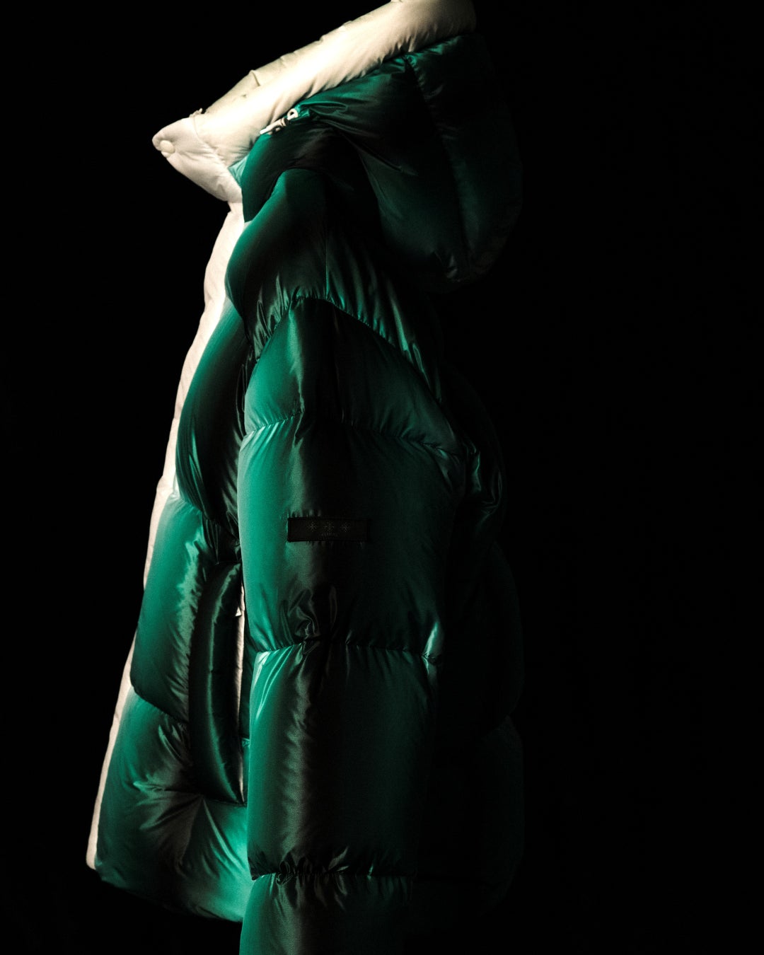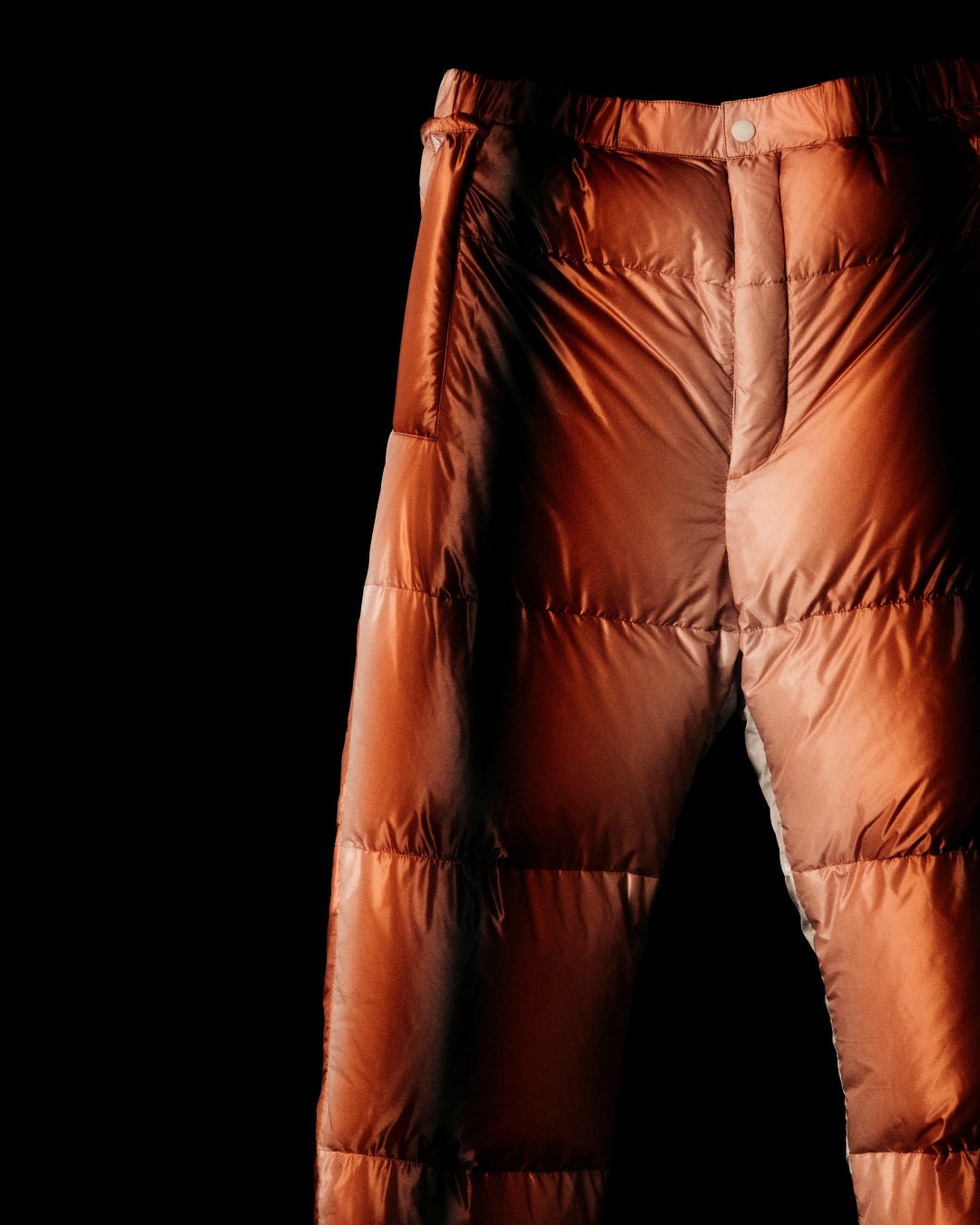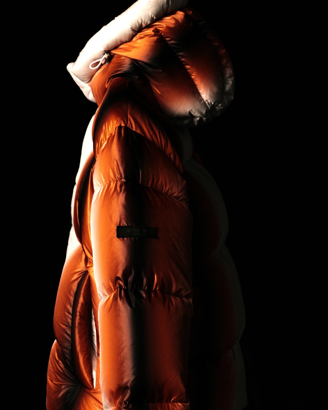 ダウンジャケット、ダウンパンツ、バッグの3アイテムを展開。 それぞれ2色のカラーバリエーションで構成されており、日本の伝統技術である輪島塗(漆塗り)から着想を得た繊細なグラデーションが、アートとして各アイテムに落とし込まれています。 漆の持つ奥行きある色彩表現をテキスタイルに昇華させることで、視覚的なレイヤーと深みを生み出し、伝統とモダンが交差する独自の存在感を放ちます。