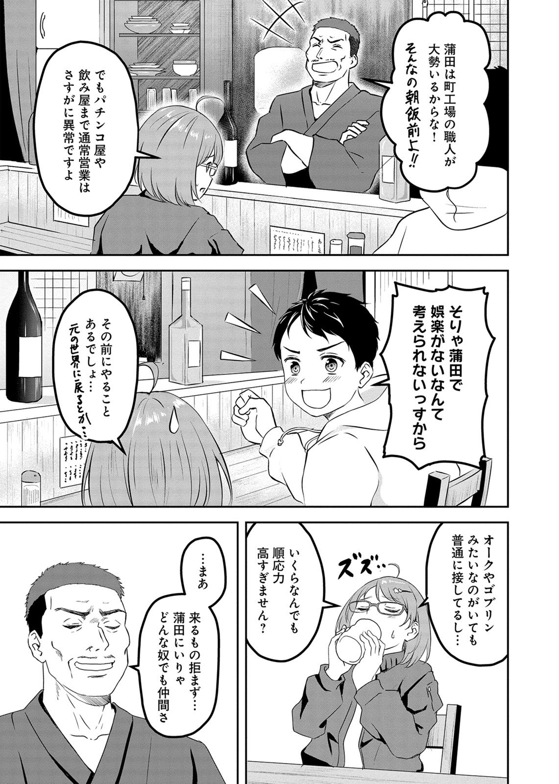 タウン誌の新人編集者・八島(やしま)さくらは蒲田を取材中、突如強い光に包まれ、蒲田の街と共に異世界に飛ばされてしまう。あわてふためくさくらとは対照的に、蒲田の住人たちは異世界に来ても平常運転で……?