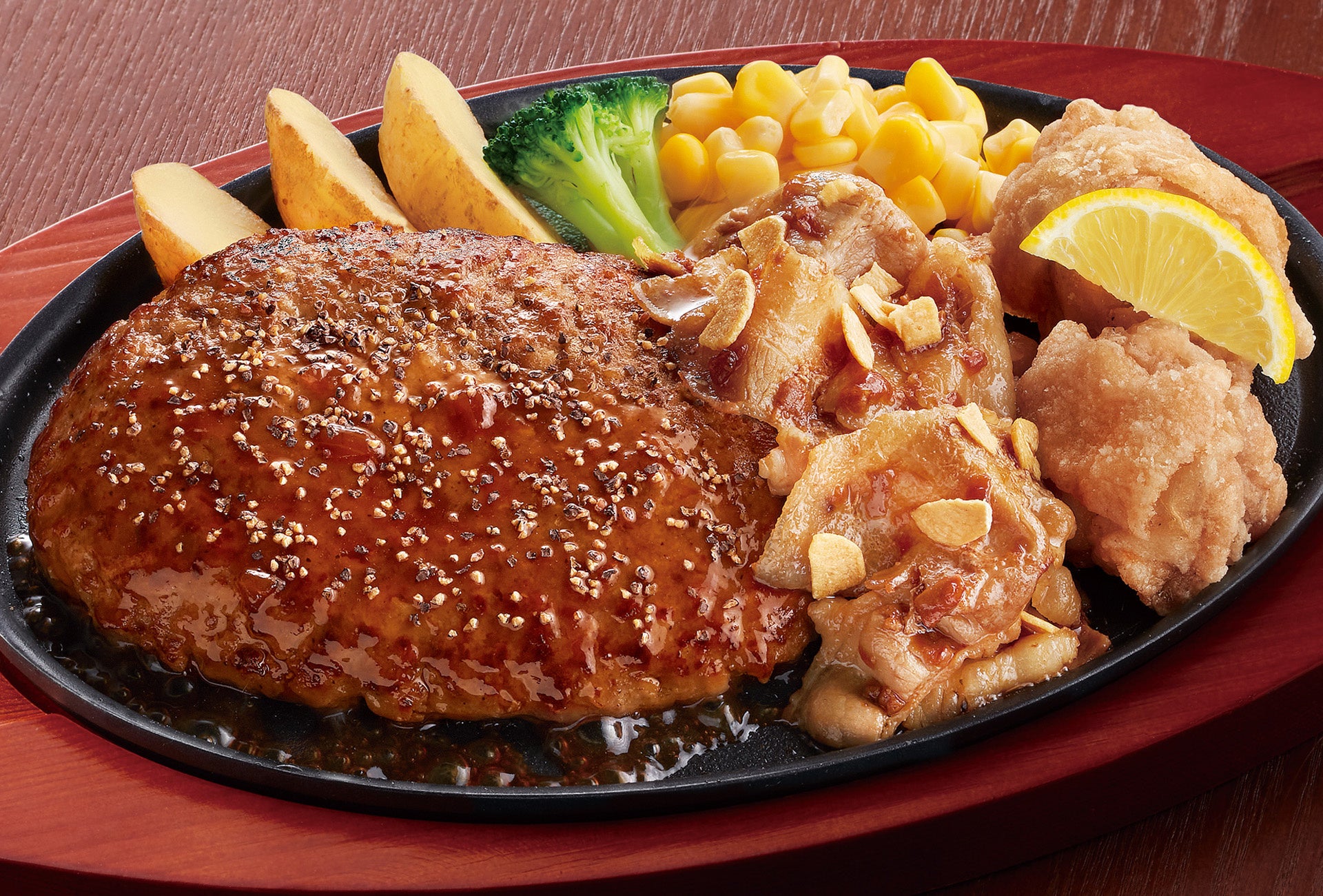ジョイフル創業祭(2024年・2025年)開催時にSNSで話題沸騰した、限定メニューがグランドメニューで復活!計約440グラムの「肉のお祭りメニュー」を、いつでもお楽しみいただけます。※重量は調理前重量です。
