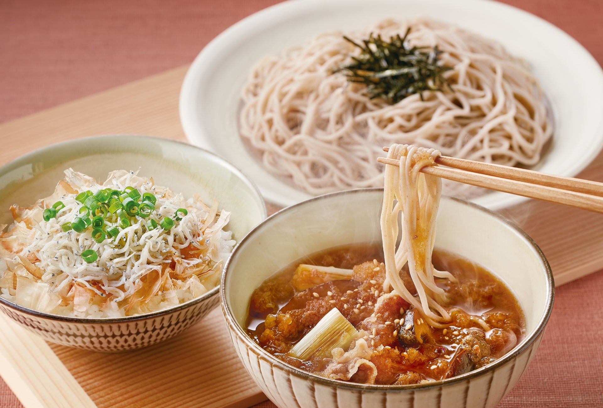 <NEW!>牛肉と焼き葱のみぞれつけそばと釜揚げしらす丼/1,099円(税込1,208円)