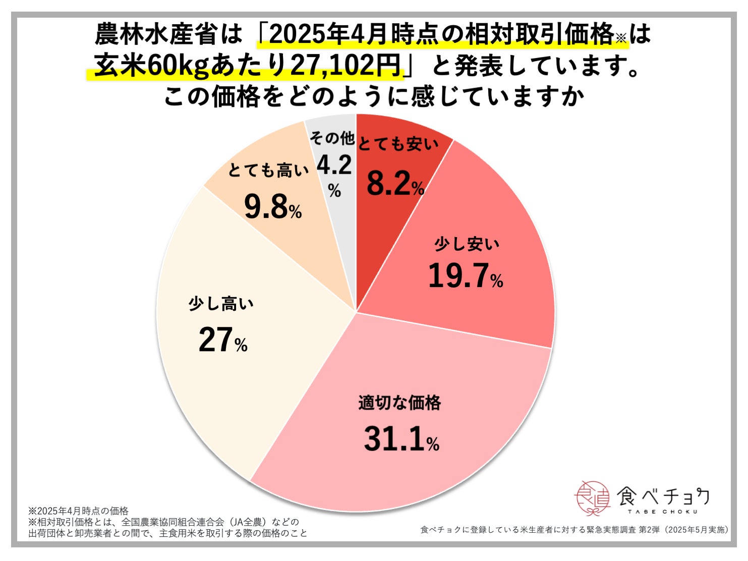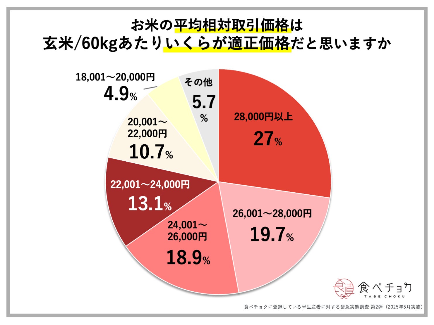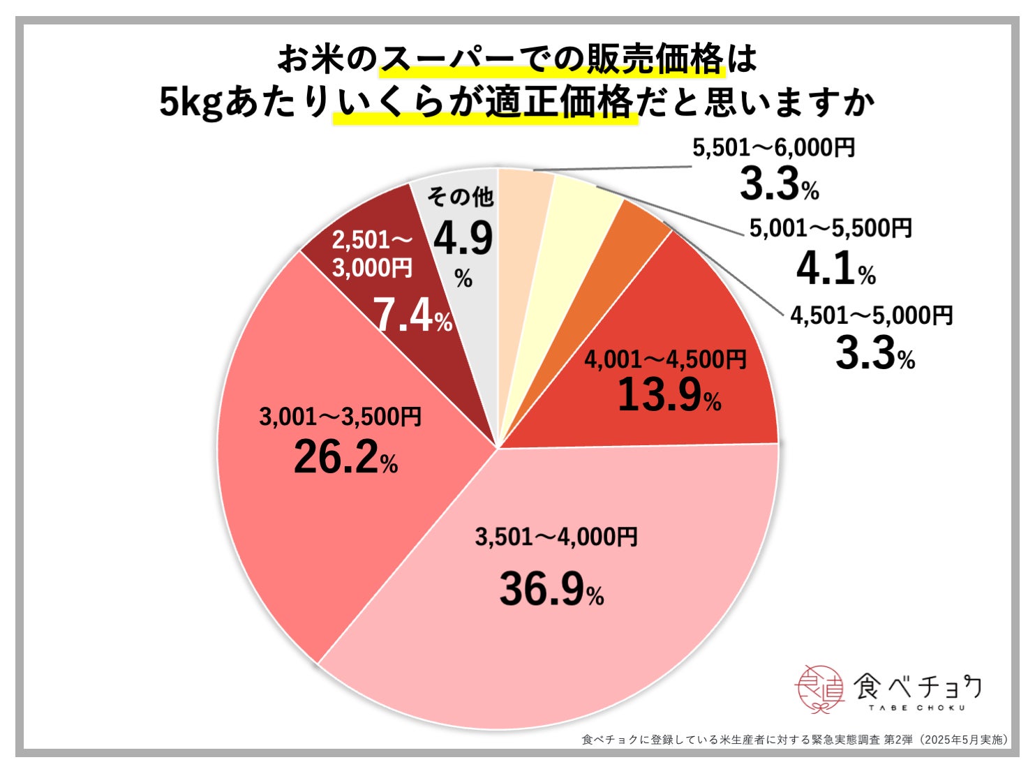 米農家の実態調査第2弾。適正販売価格は「3,501円から4,000円」と考える米農家が37%