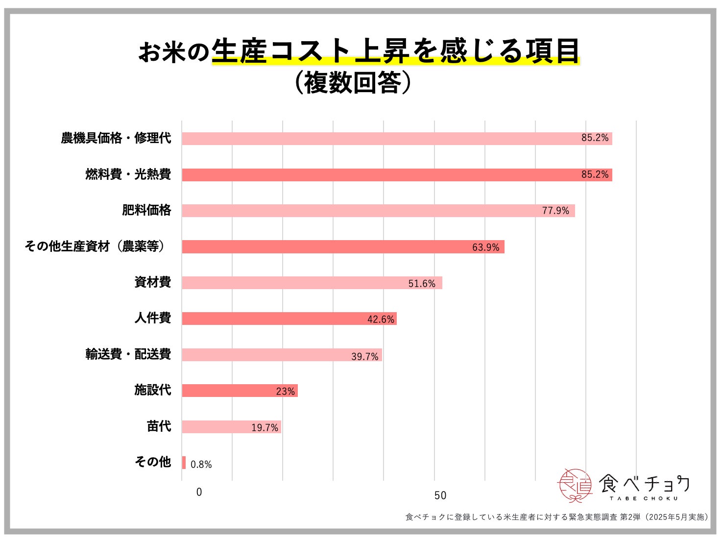 具体的な上昇コストは農機具価格・燃料費・肥料代の高騰が大きいことが分かりました。