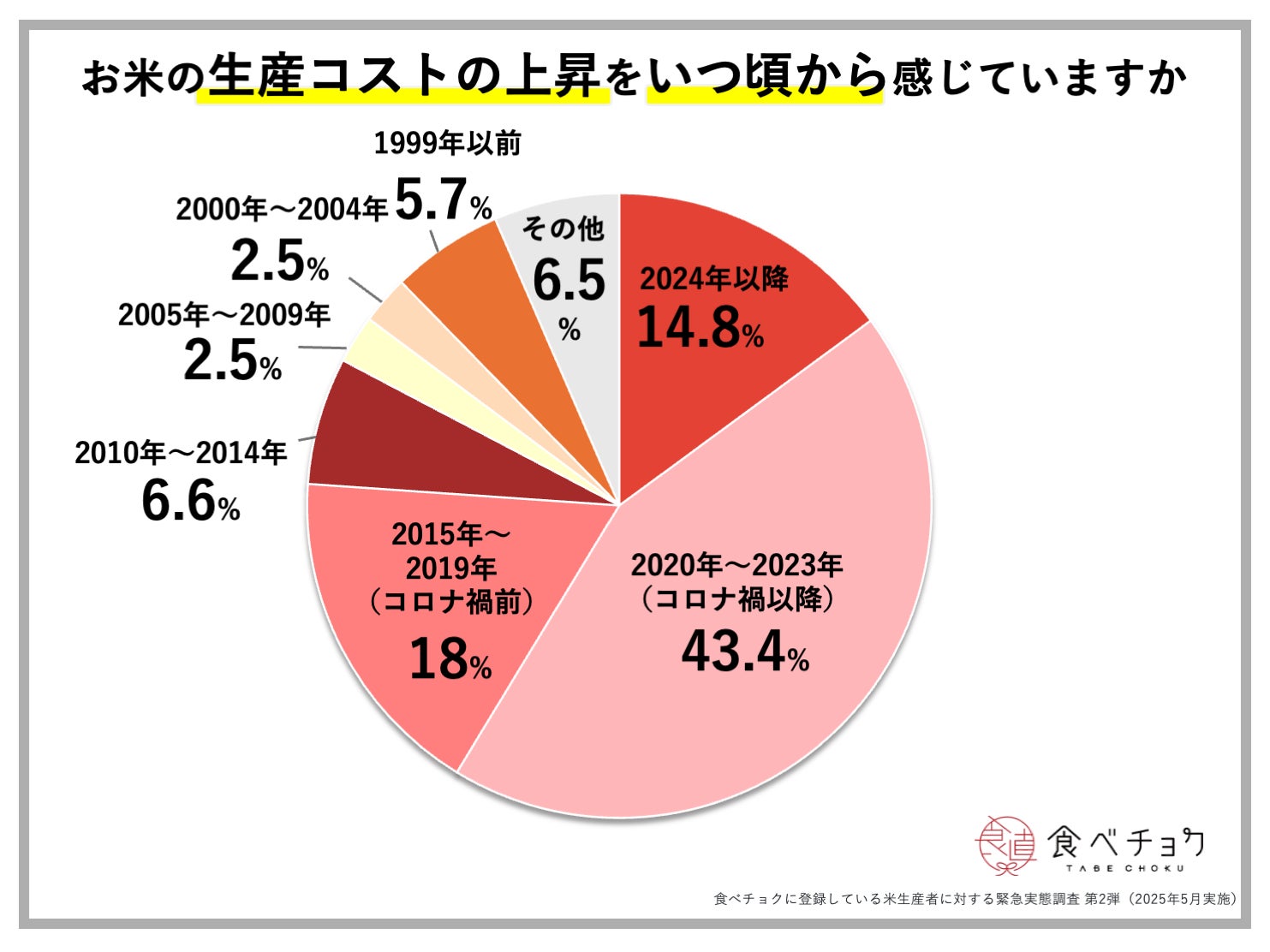 1万軒を超える生産者ネットワークと、認知度・利用率など9つのNo.1(※1)を持つ日本最大の産直通販サイト(※2)「食べチョク」を運営する株式会社ビビッドガーデン(本社:東京都港区、代表取締役社長:秋元里奈)は、全国的な米価格の上昇と供給不足が続く中、生産現場で起きている変化を把握・発信するため、米の生産者に対して緊急実態調査第2弾を実施しました。