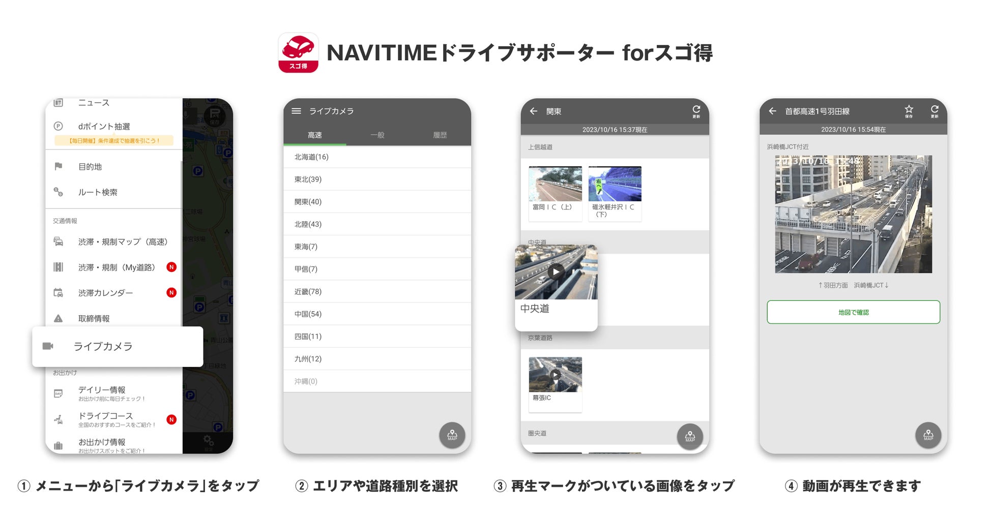 『NAVITIMEドライブサポーター forスゴ得』『カーナビタイム』『渋滞情報マップby NAVITIME』、「渋滞ライブカメラ」機能を提供開始