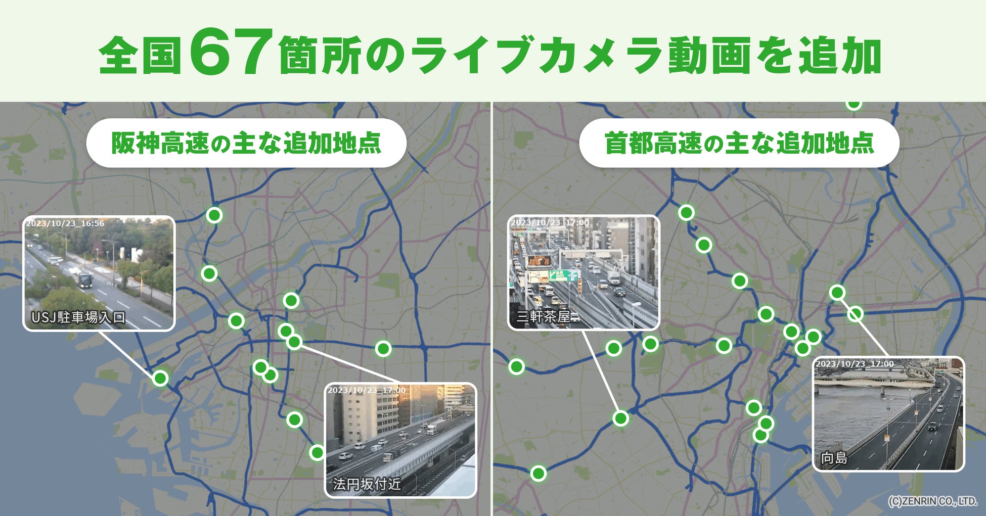 ~全国の渋滞が発生しやすい67箇所のライブカメラ動画で、渋滞状況の確認が可能に~