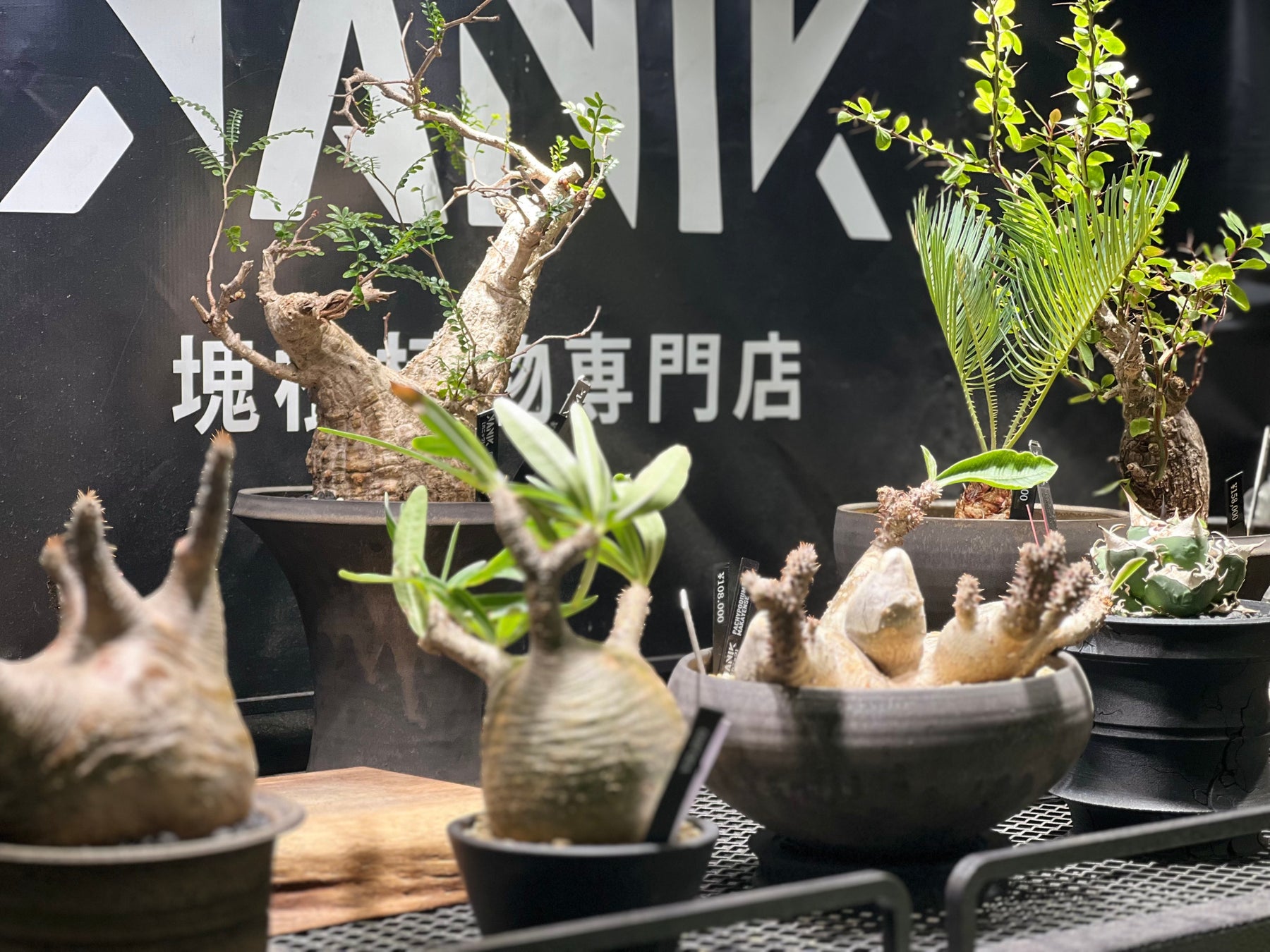 塊根植物は、幹や根に水分を蓄える乾燥に強い植物です。水やりの手間が少なく個性的な見た目はインテリアにも最適です。今回の限定イベントでは、アフリカやメキシコから厳選した塊根植物を、植物棚や育成ライトとともに展示・販売。さらに、陶芸家やクリエイターとコラボレーションした特別な鉢もご用意しました。