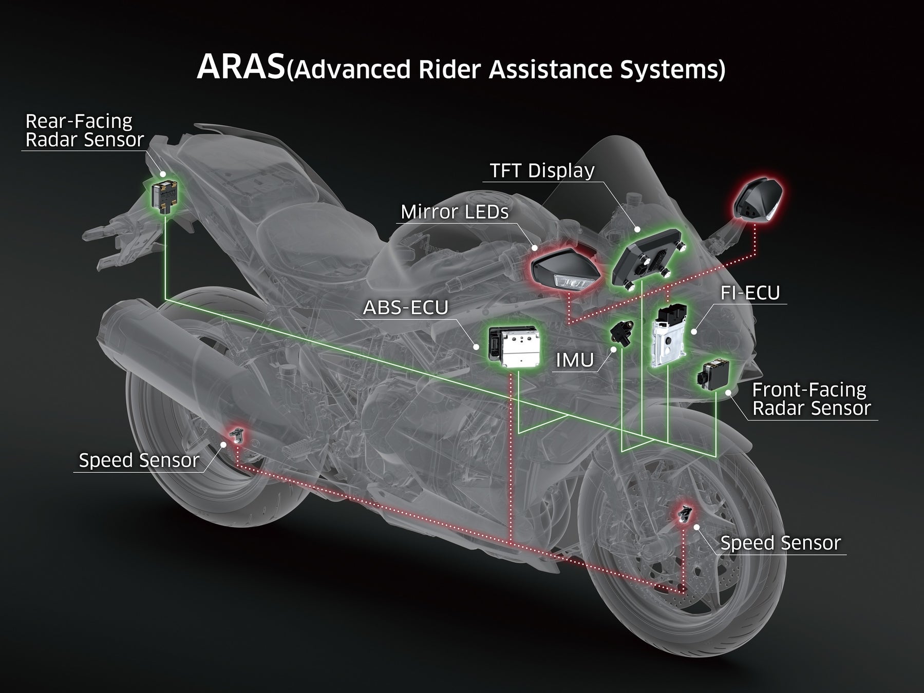 ※ARASは、四輪車用システムとは異なりギヤごとに設定された一定の速度以下になるとシステムを解除するため、停止時はライダー自身のブレーキ操作が必要となります。また、前走者が急に減速、停止した場合も同様にライダー自身のブレーキ操作が必要となります。