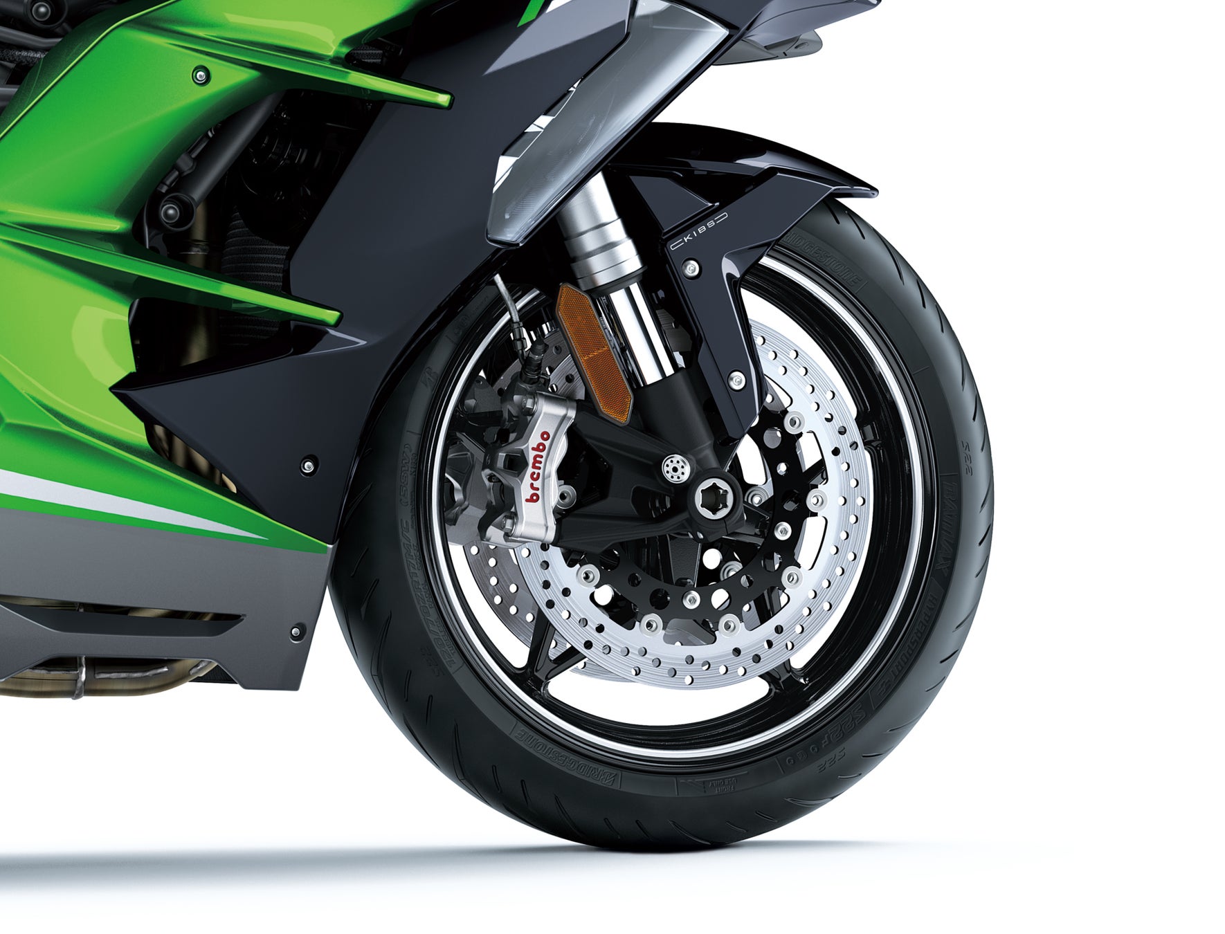 パワーと燃費性能の両立を目指して開発されたバランス型スーパーチャージドエンジンを搭載するNinja H2 SX SE。Ninja H2 SXの装備に加えKECS(カワサキエレクトロニックコントロールサスペンション)を搭載し、路面やライディング状況に合わせ瞬時に減衰力を最適化します。また、ショーワのスカイフック式EERA(電子制御ライドアジャスト)テクノロジーにより、タイヤの接地感を高め、コーナリング時に優れた安定性を実現します。