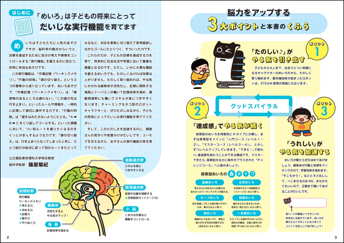 バリエーション豊かなめいろを解いていくうちに、集中力・記憶力・判断力など、将来的に重要とされる脳力の"実行機能“が自然と育まれていきます。