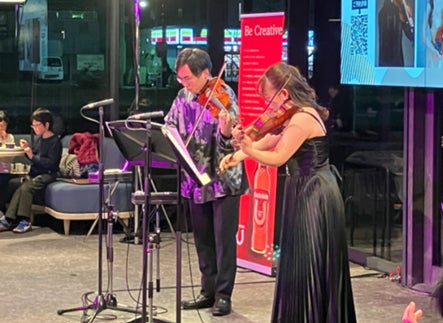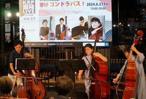 「KRP創発ライブ」は、KRP地区にあるフードサロン「GOCONC」オープン1周年を機に、2022年4月より開始しました。新しい出会いや交流がKRP地区で生まれる(創発する)ことを目指し、音楽を中心にクリエイティブなひとときを提供しています。これまでに管弦楽を中心としたクラシックをはじめ、ブルースハープ、長唄、DJ、現代音楽など多彩なジャンルの演奏者を招き、さらにお笑いライブや映画上映など音楽以外の企画も実施してきました。