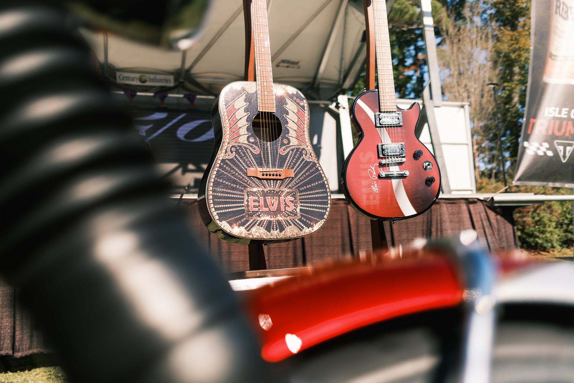 「エルヴィス・プレスリー」カスタムのトライアンフ・モーターサイクルとギブソン・レスポール・ギター