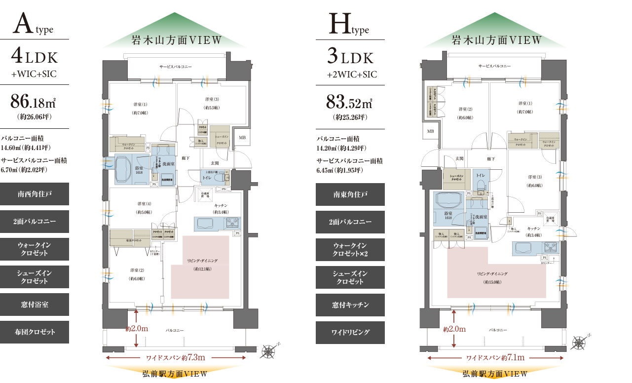 全邸南東向きで二面バルコニーを採用。雄大な岩木山ビューを実現。