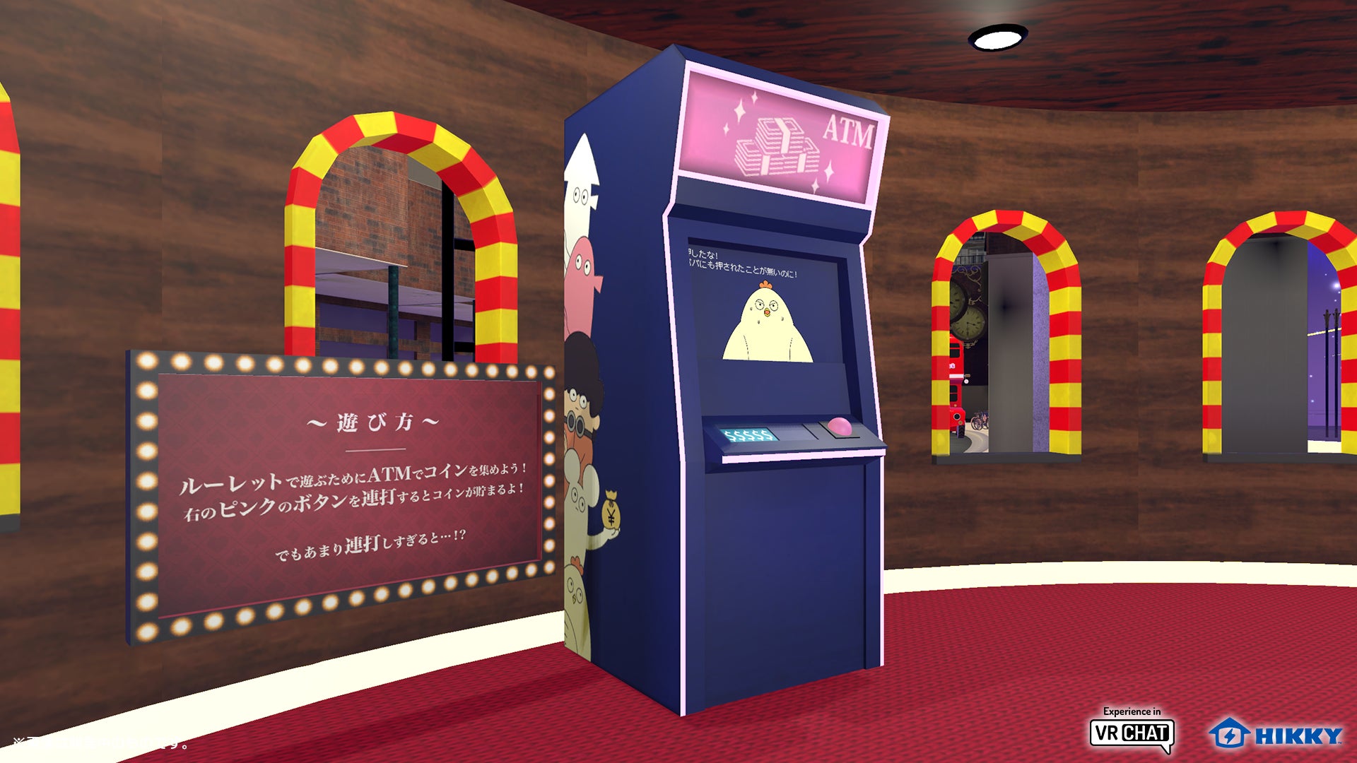 「コウイチルーレット」では出た目に合わせてここでしか見ることができないコウイチさんの動画が視聴できます。ルーレットの隣にある「はじめまして松尾ですATM」にて、ベットするコインを引き出しましょう。ただしボタンを連打しすぎるとコインを引き出しすぎるとエラーが…?!さらにここでも松尾さんのオリジナル動画が視聴可能です。「のばまんガシャ」では、5種類ののばまんさんのアバターがランダムで登場。その場でアバターに着替えることができ、その姿でVketを楽しむことが可能です。