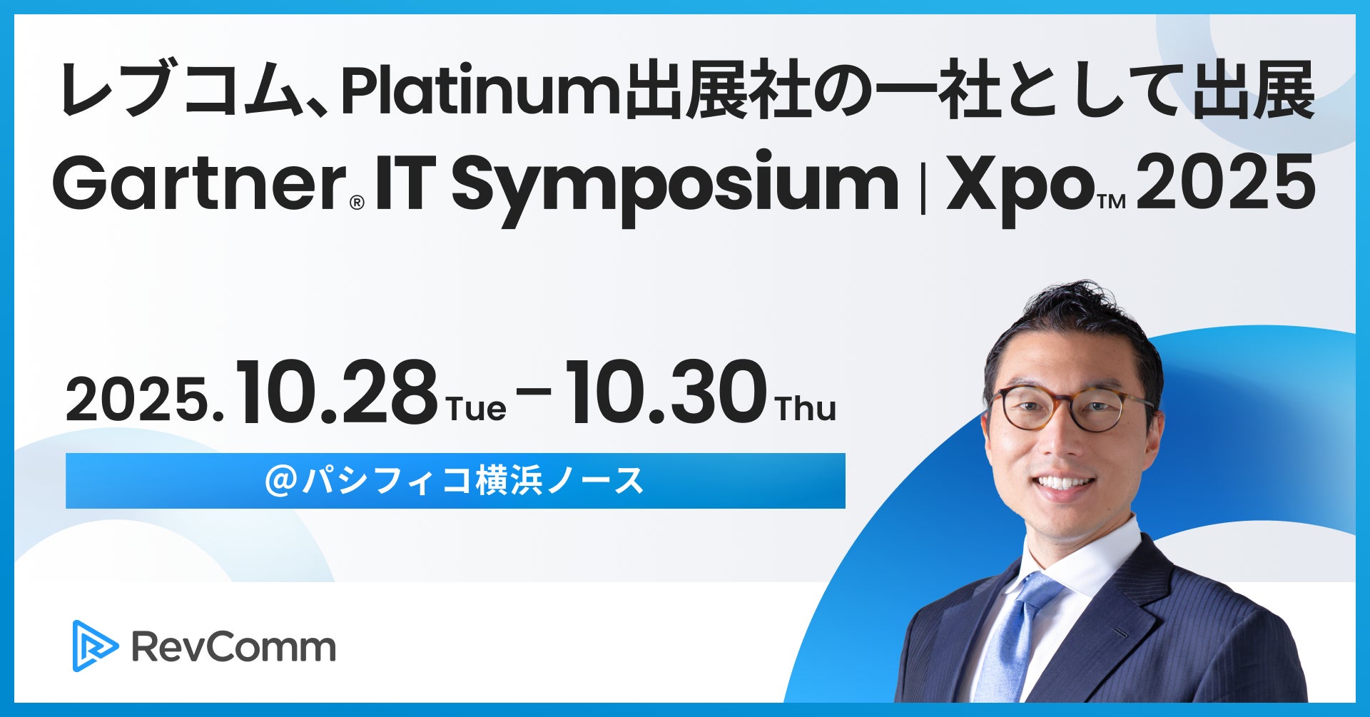株式会社RevComm(レブコム、本社:東京都渋谷区、代表取締役:会田武史)は、2025年10月28日(火)~30日(木)開催の Gartner IT Symposium/Xpo™ 2025 にPlatinum出展社の一社として出展いたします。