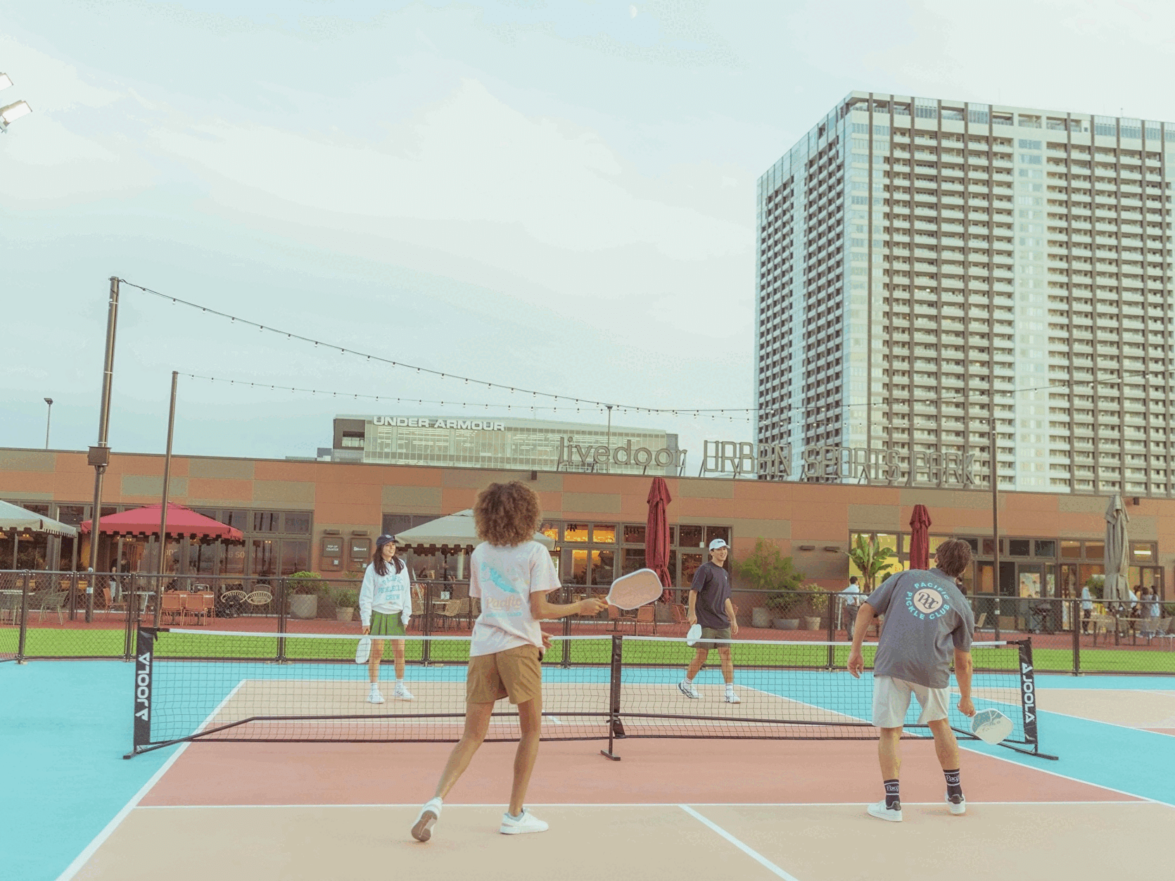 多彩なスポーツコンテンツやアクティビティを有する場で、オールデイに利用できるカフェ、ピックルボールのグッズを取り揃えるショップ、手ぶらでも体験可能なレンタルサービスを運営します。