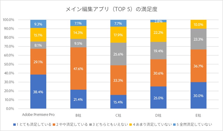 Adobe Premiere Proの使用満足度が顕著に高い結果に
