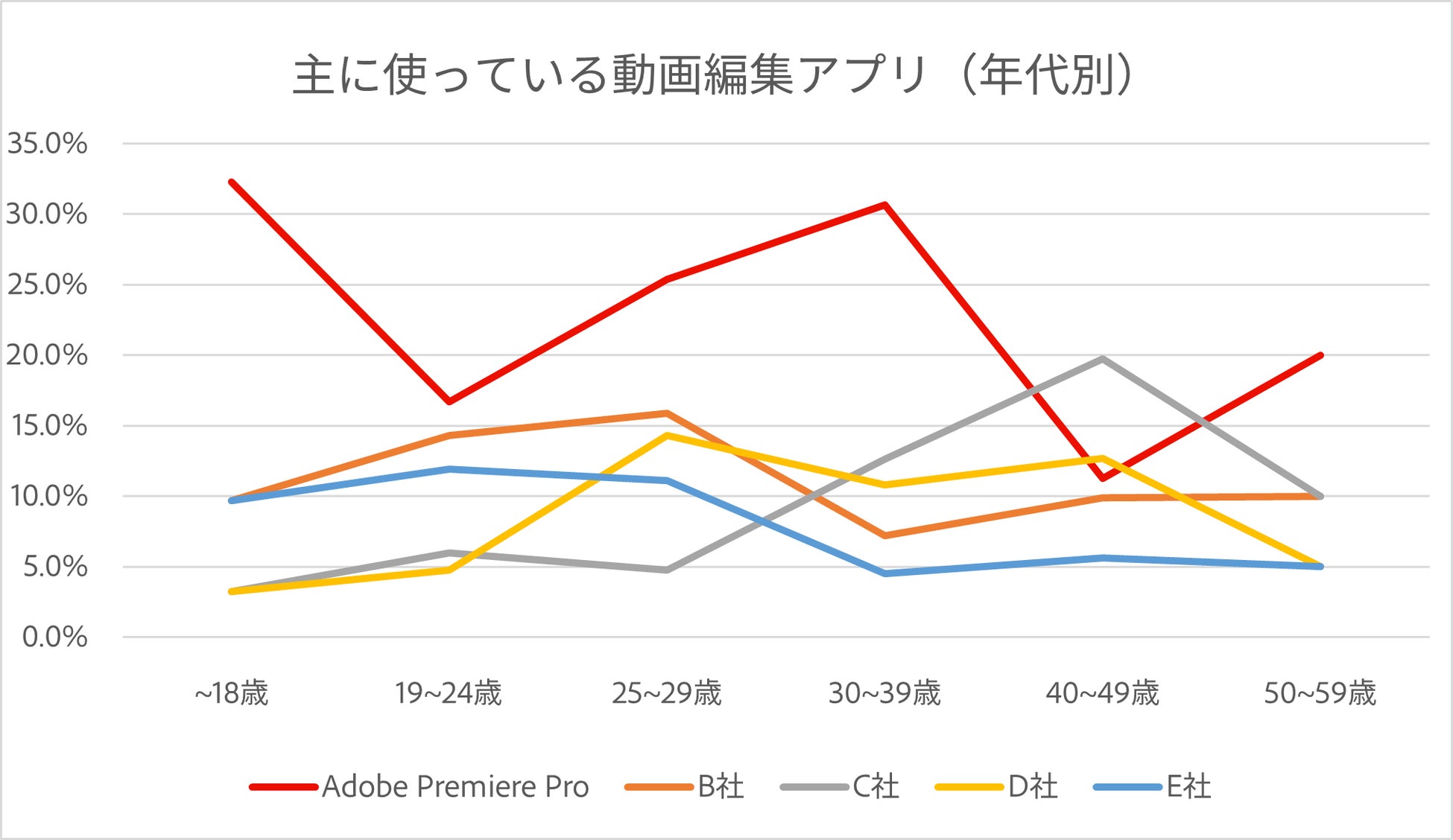 使用率No.1のAdobe Premiere Pro、特に若年層に人気