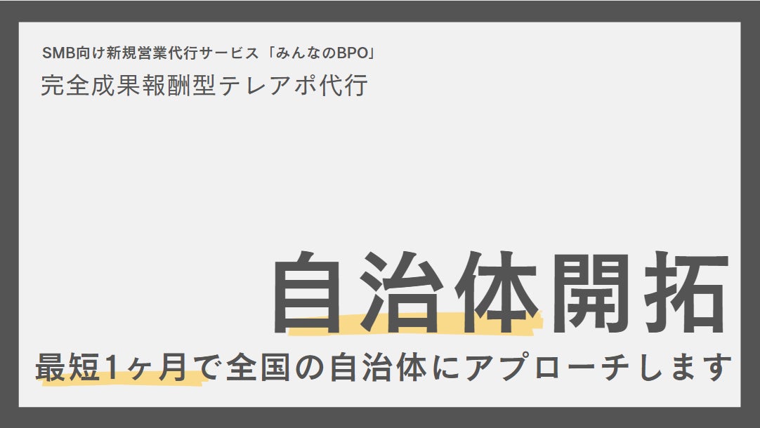 「みんなのBPO」にて【成果報酬型・自治体アポ獲得メニュー】の提供を開始。最短1ヶ月で全国1,700自治体にアプローチ可能。