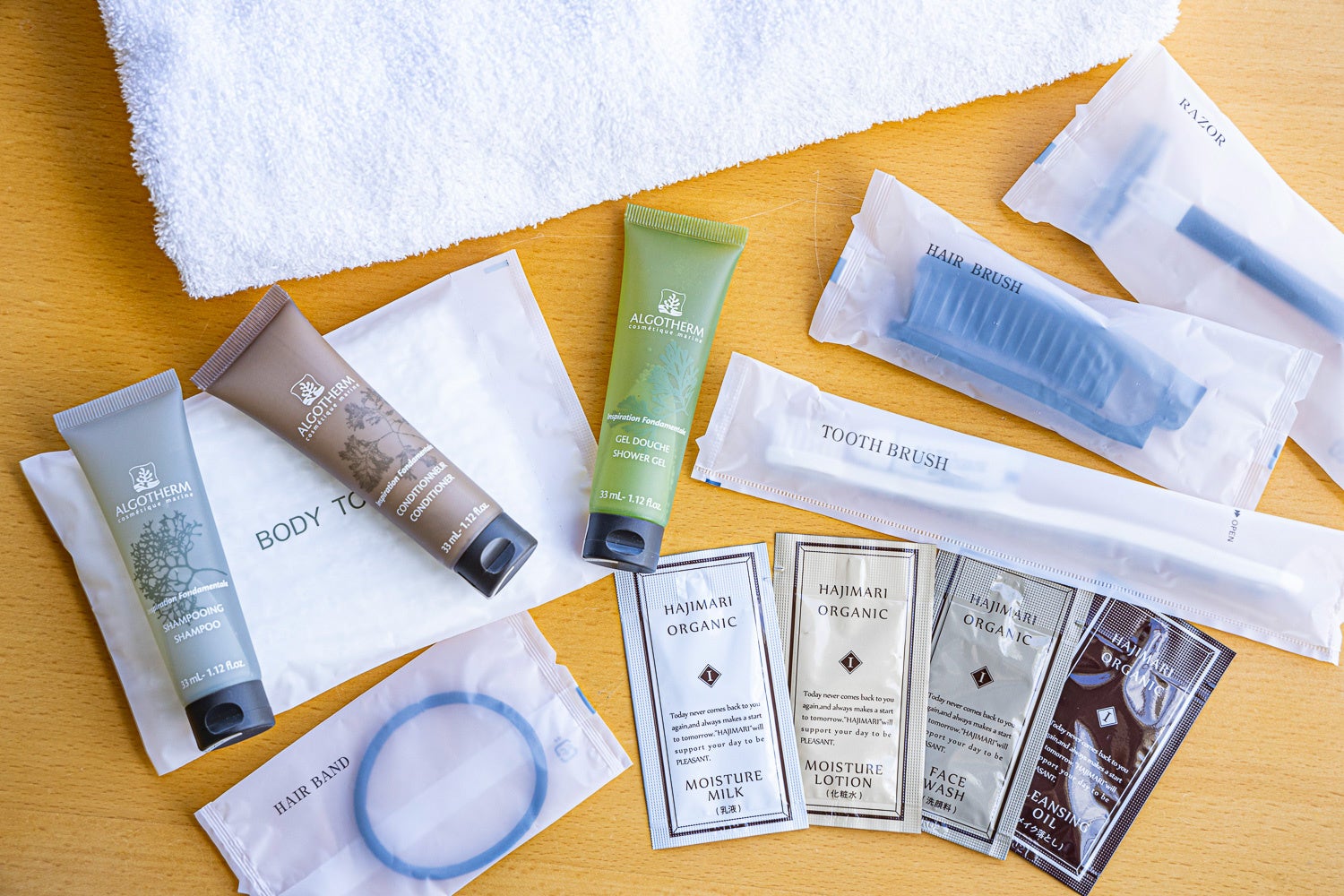 アメニティ:ナイトウェア、スリッパ、フェイスタオル、バスタオル、シャンプー、コンディショナー、ボディソープ、ボディローション、ボディタオル、ハンドソープ、歯ブラシ、メイク落とし、洗顔料、化粧水、乳液、ヘアブラシ、カミソリ、ヘアゴム