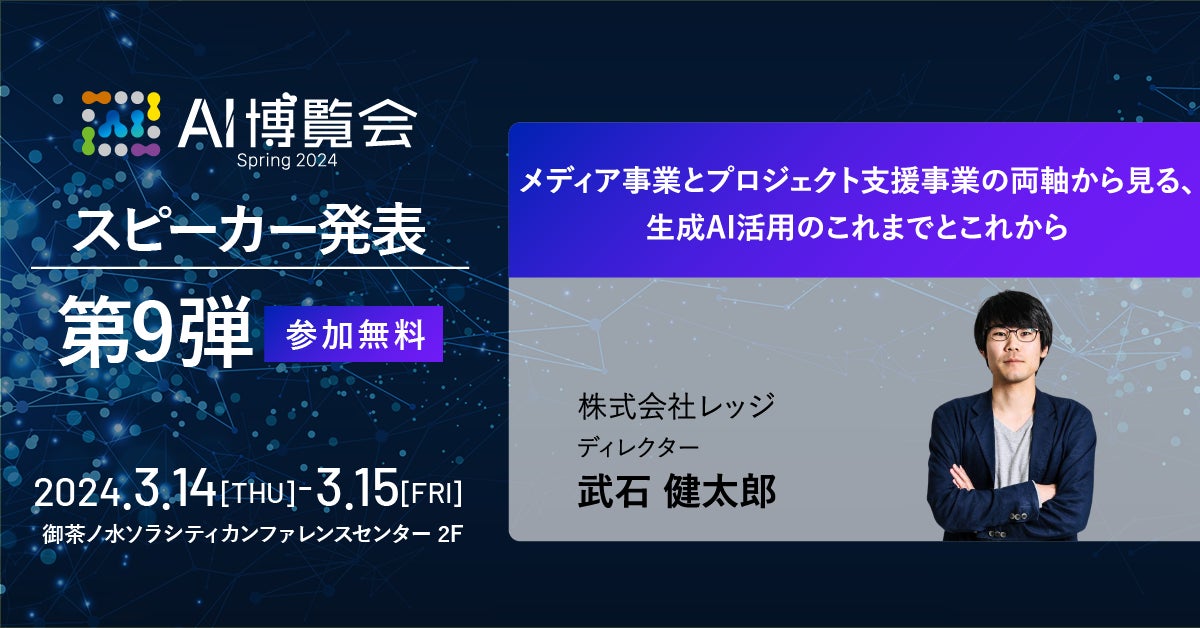 参加無料!「メディア事業とプロジェクト支援事業の両軸から見る、生成AI活用のこれまでとこれから」など講演や展示を2024年3月14日(木)~3月15日(金)に開催。先着100名の入場となります。