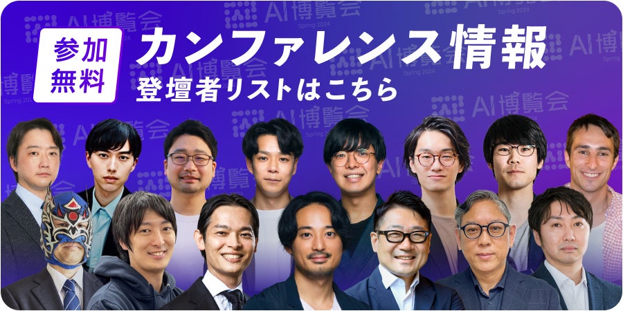 「AI博覧会 Spring 2024」カンファレンスの登壇者全16名が発表されました。今回のカンファレンスでは、AI技術の専門家や業界のリーダーたちが集まり、最新の動向、実用事例、将来の展望について講演します。AIに関連する最新の話題を学ぶ絶好のチャンスですので、ぜひ参加をご検討ください。この機会をお見逃し無く!