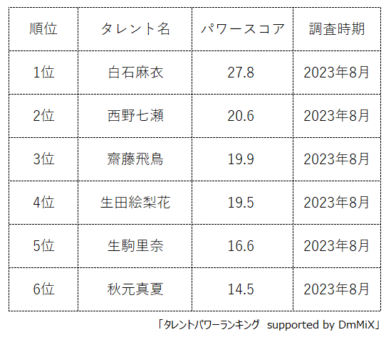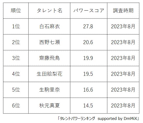 本ランキングは、2023年8月度に実施したタレント調査データを利用し、タイトルに応じてランキング形式でまとめたものです。