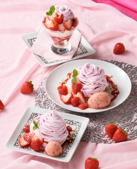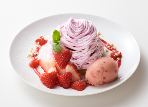 春限定の味わいはいちご尽くしで仕上げました。甘いいちごのクリームをモンブランのように