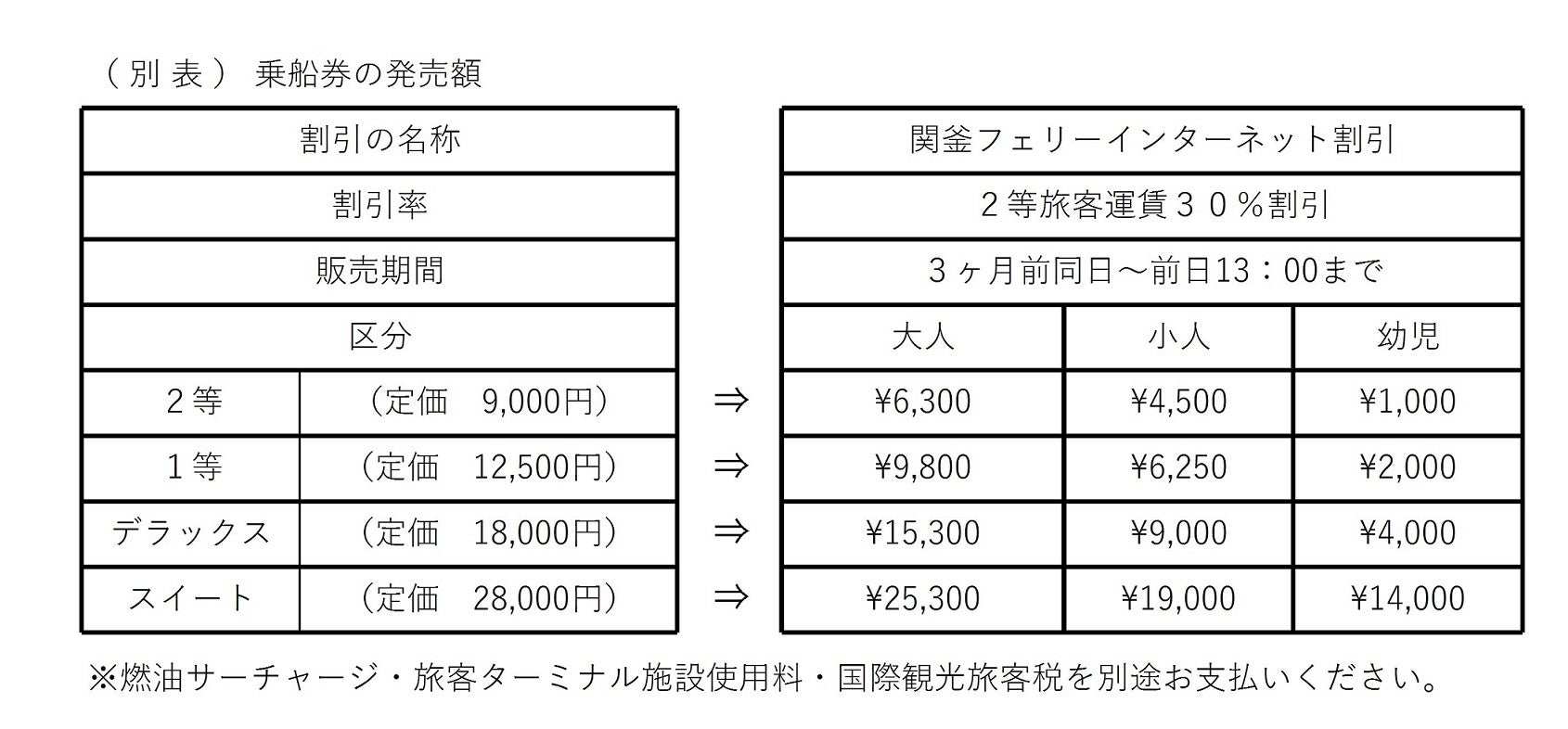 詳細は、関釜フェリー株式会社 ホームページ掲載 http://www.kampuferry.co.jp/