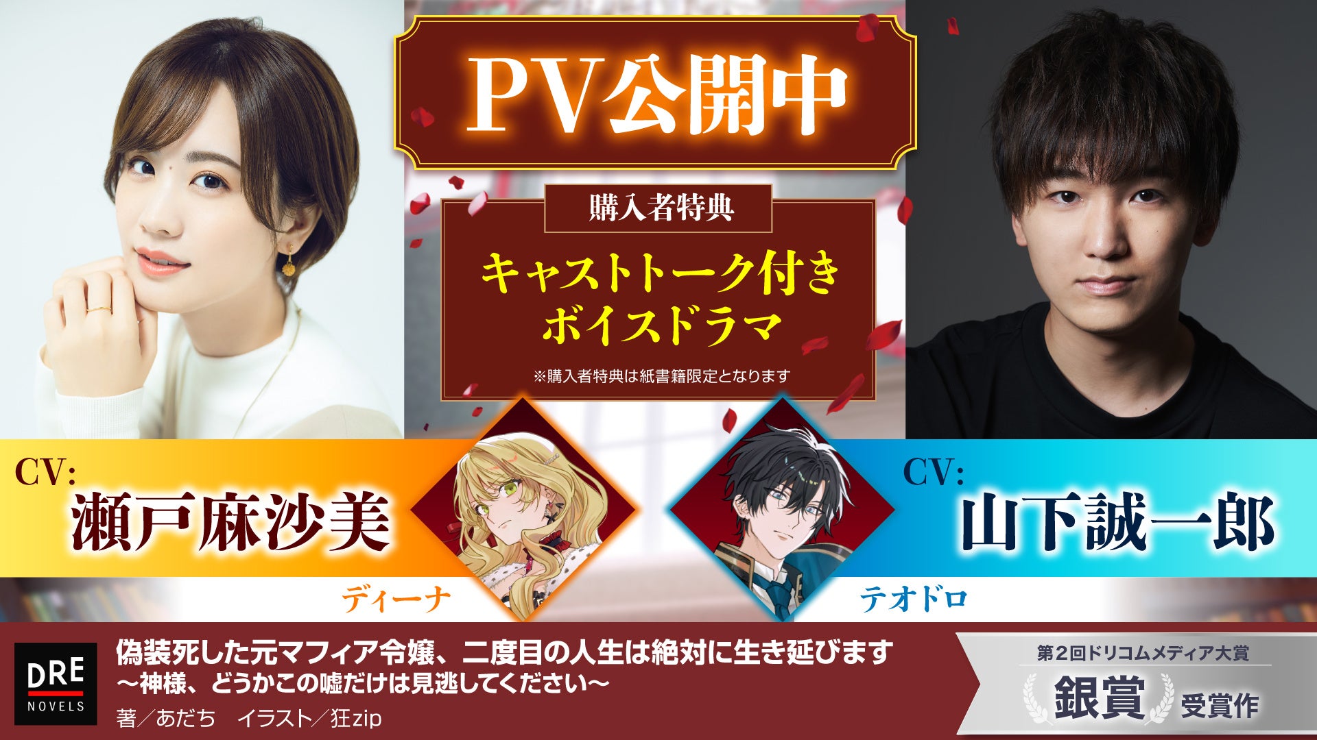 瀬戸麻沙美&山下誠一郎によるPVを公開!ドリコムメディア大賞《銀賞》受賞作『偽装死した元マフィア令嬢、二度目の人生は絶対に生き延びます』10月10日(木)発売