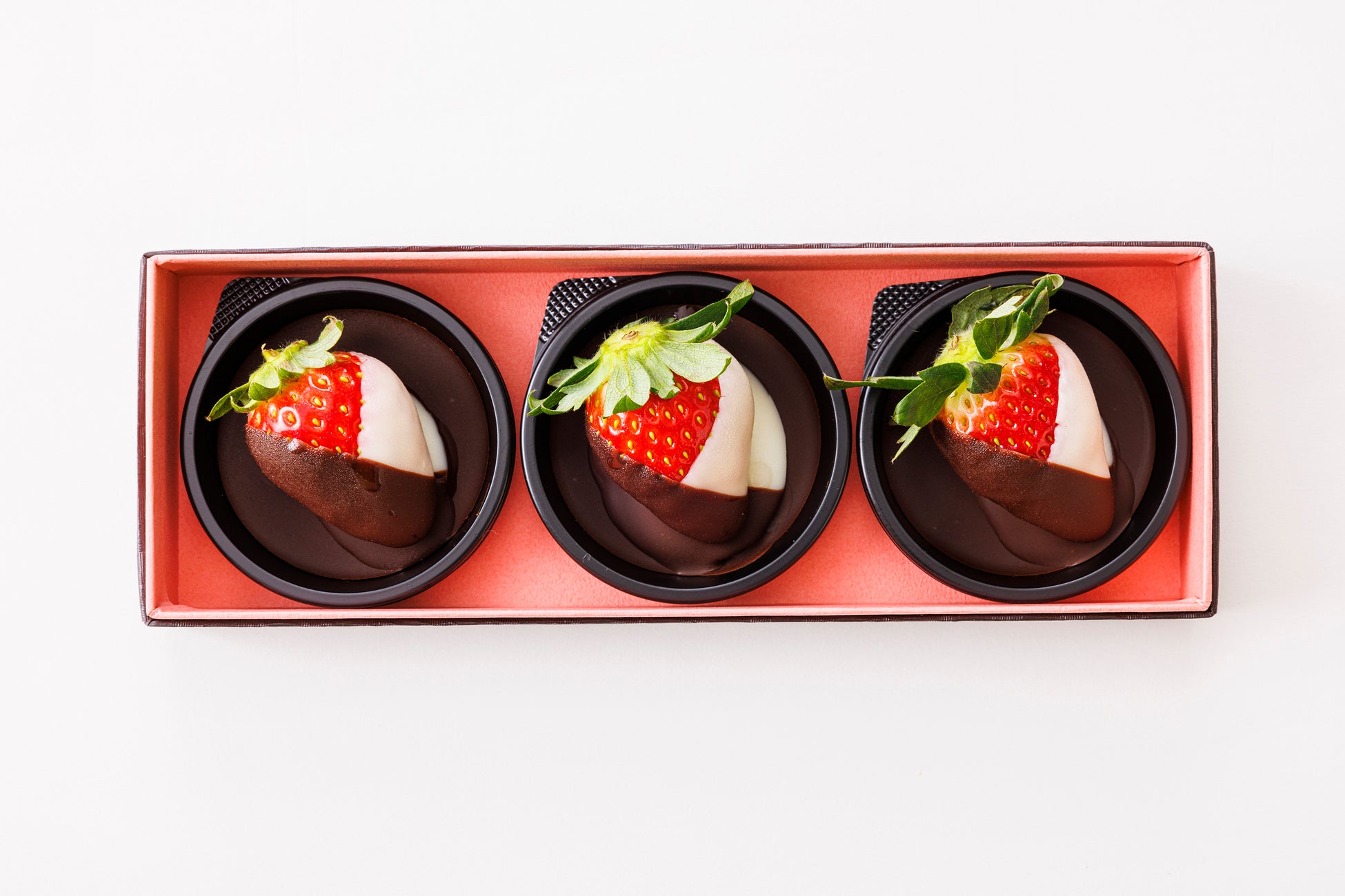 国産苺を2色のチョコレートでコーティング。みずみずしい苺とチョコレートが相性抜群です。